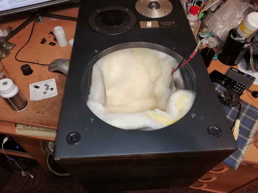 И одна подушка помещена под СВЧ/ВЧ головки, а вторая под НЧ головку