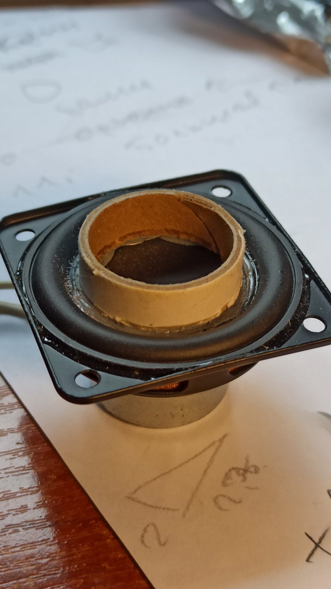 Эксайтеры не выдержали мощного прогона. Проставки оторвало от диффузоров, поскольку приклеены были по периметру для минимизации клея. Ожидаемо.