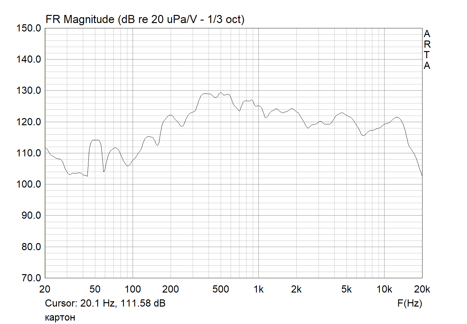 Я вижу, что китайские большие эксайтеры добегают до 12кГц на упаковочном картоне, значит нужно брать. Есть еще одна мысль сделать поверхность пенокартона жестче, все же бумага мягкая, ногтем продавливается. Думаю, от этого горбит на средних. Надо намешать полиэфирки со слюдой, или с аэросилом в качестве покрытия. Ребята из Мескалито заявляют, что балуются с покрытиями.