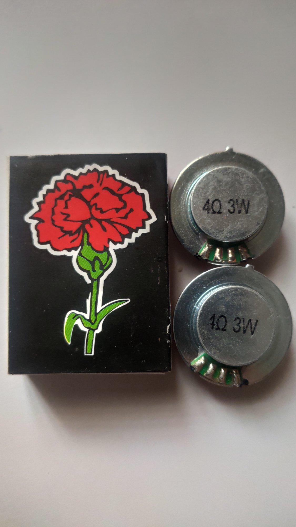 Сегодня пришли такие малыши-китайчики. (пачка спичек дня масштабу). Сопротивление 3,8 Ом у обоих по мультиметру. Ещё не слушал. С виду доверия не внушают :)