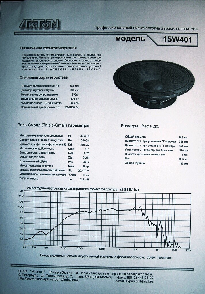 Подумайте на досуге над этим графиком. Как такое вообще возможно? Как можно АЧХ снова расти после резонанса? А параметры у головки, кстати хорошие