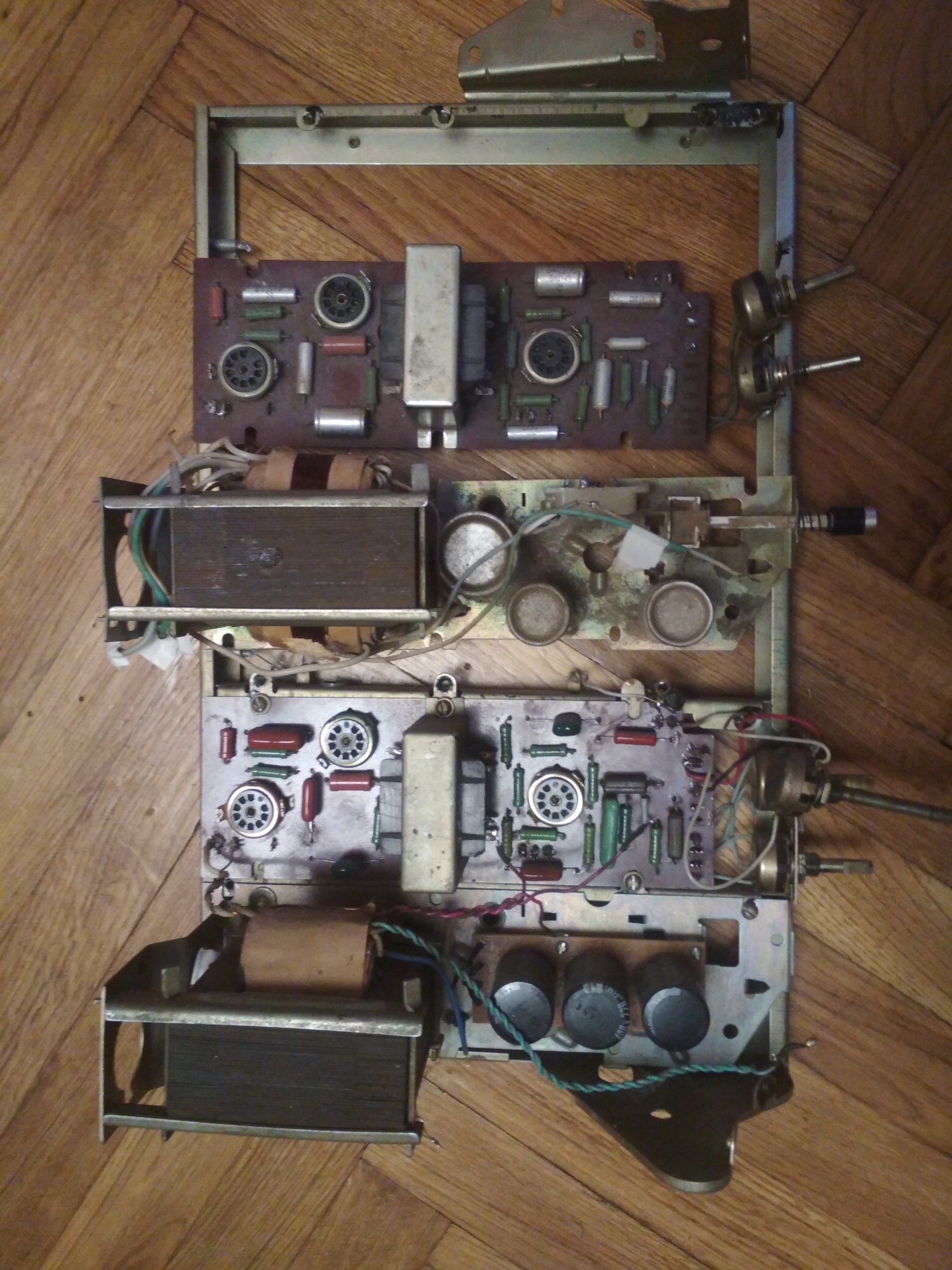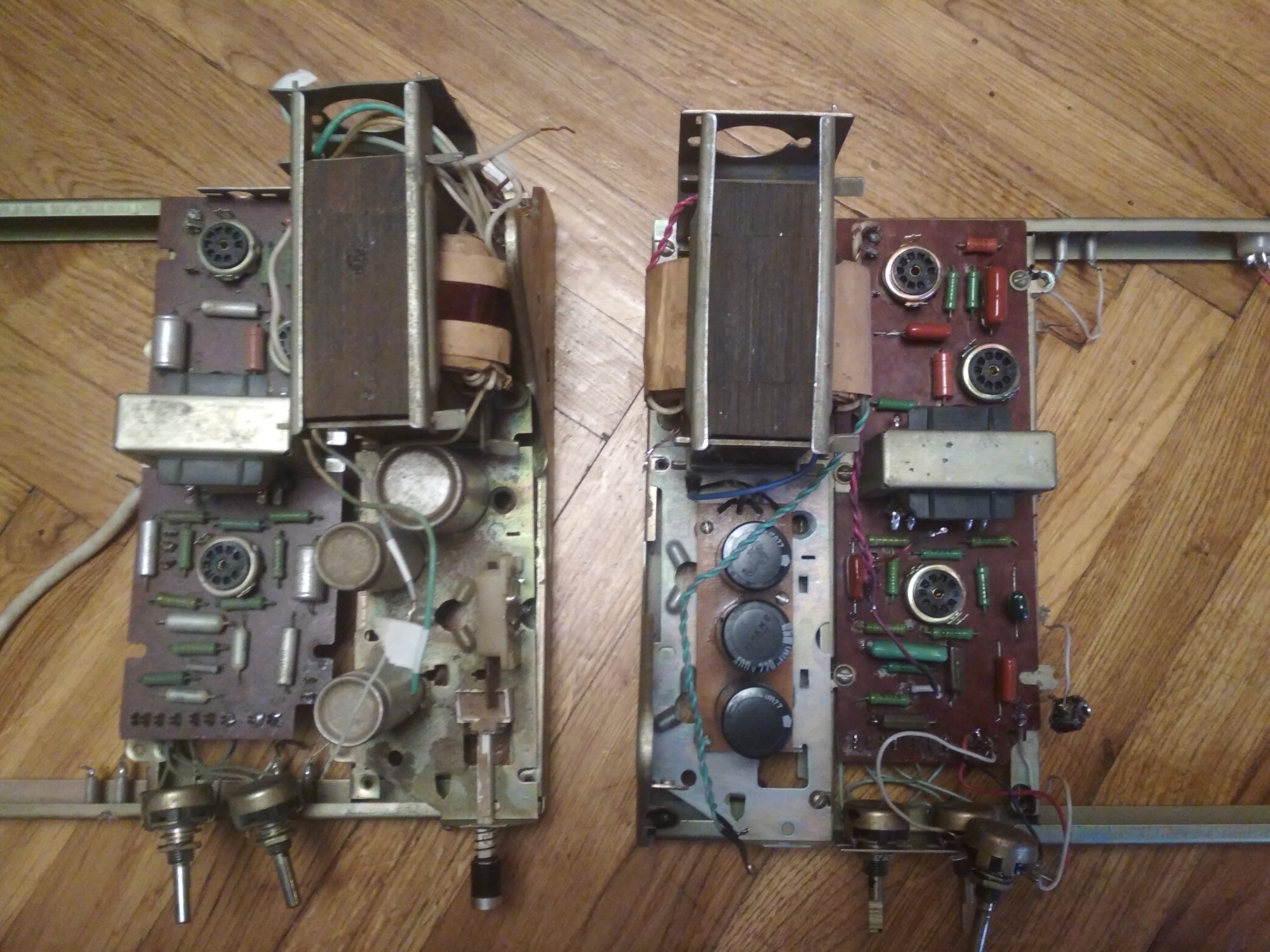 Вот я и решил оставить родные печатные платы УНЧ Урала и родную железную раму, доверясь советским инженерам. Земля тоже в разных местах припаяна к раме, отдельный провод экрана из силового трансформатора. Родная схема работает отлично, лезть в неё нет никакого желания, только конденсаторы заменил на плёнку.