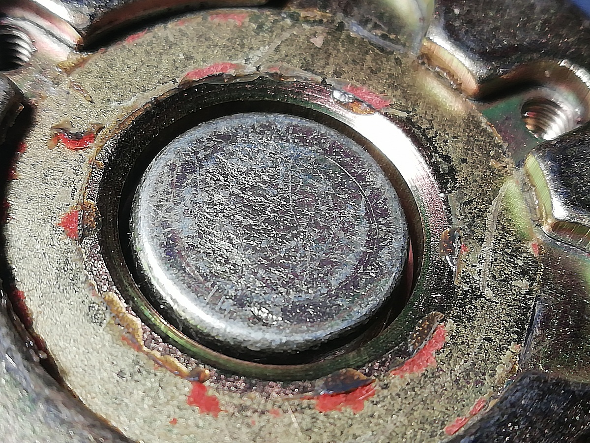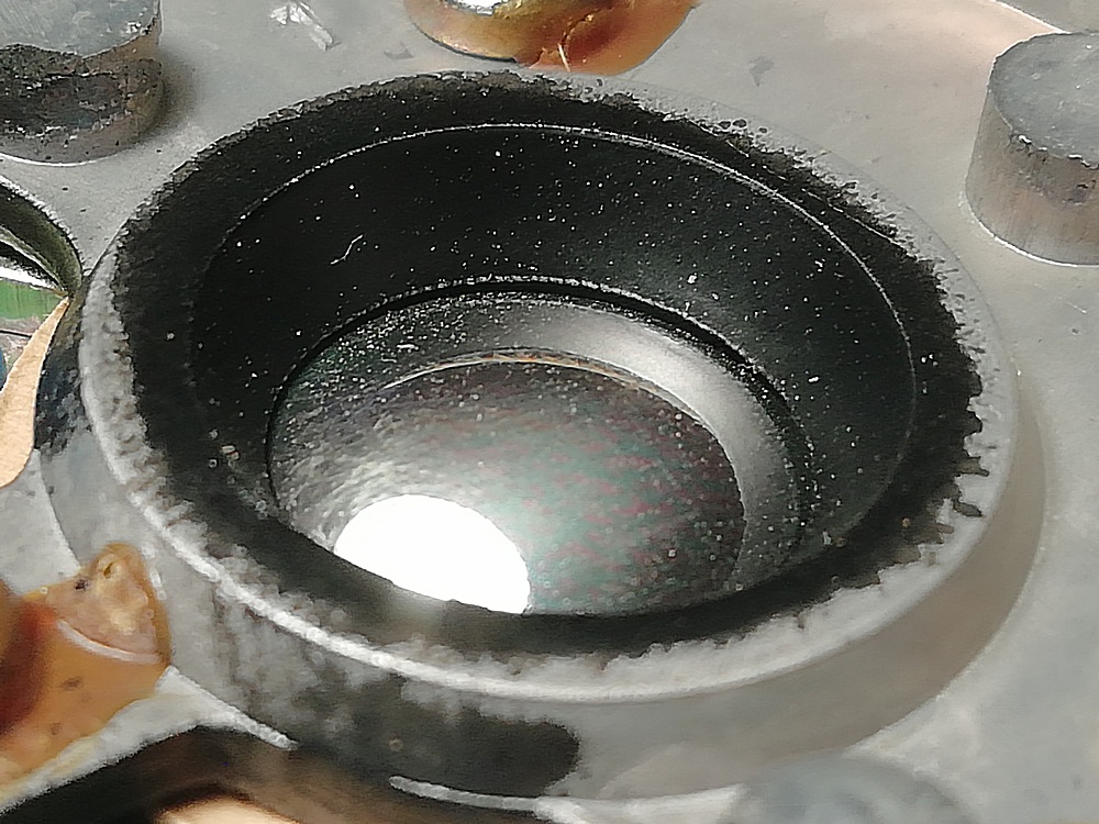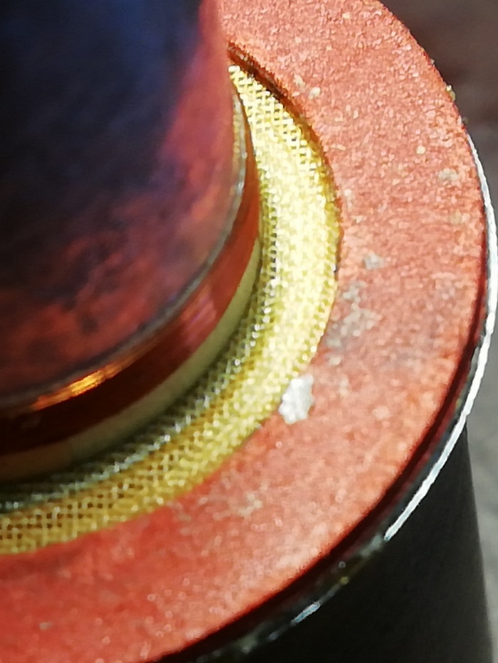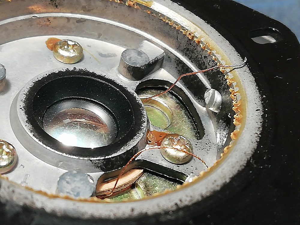 Глазом, вооружённым лупой часовщика, в глубине явно различается алюминиевая вставка в виде кольца между керном и чашкой МС.
