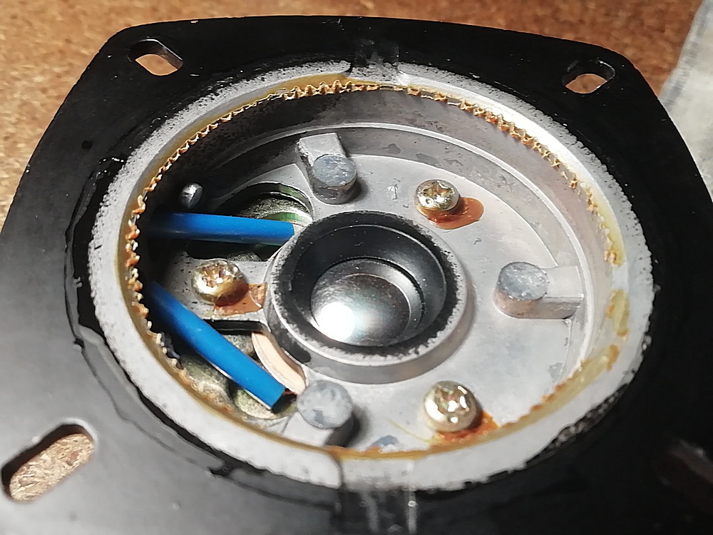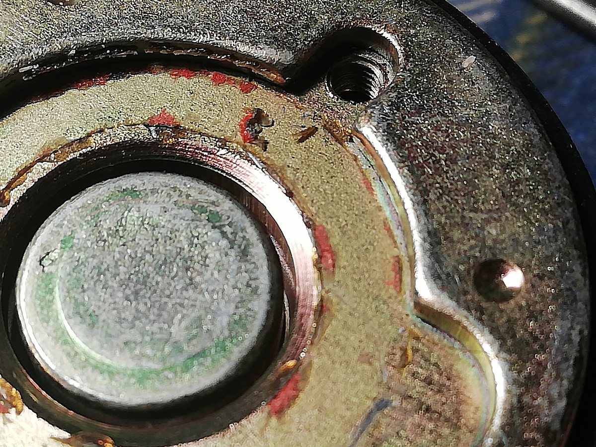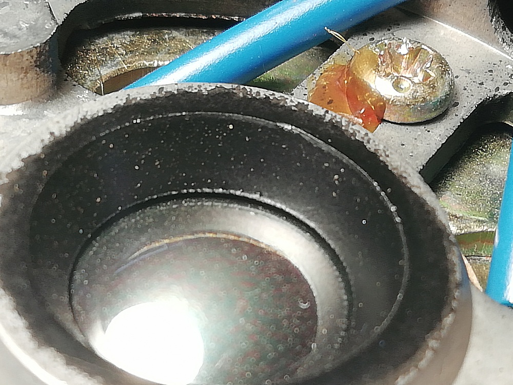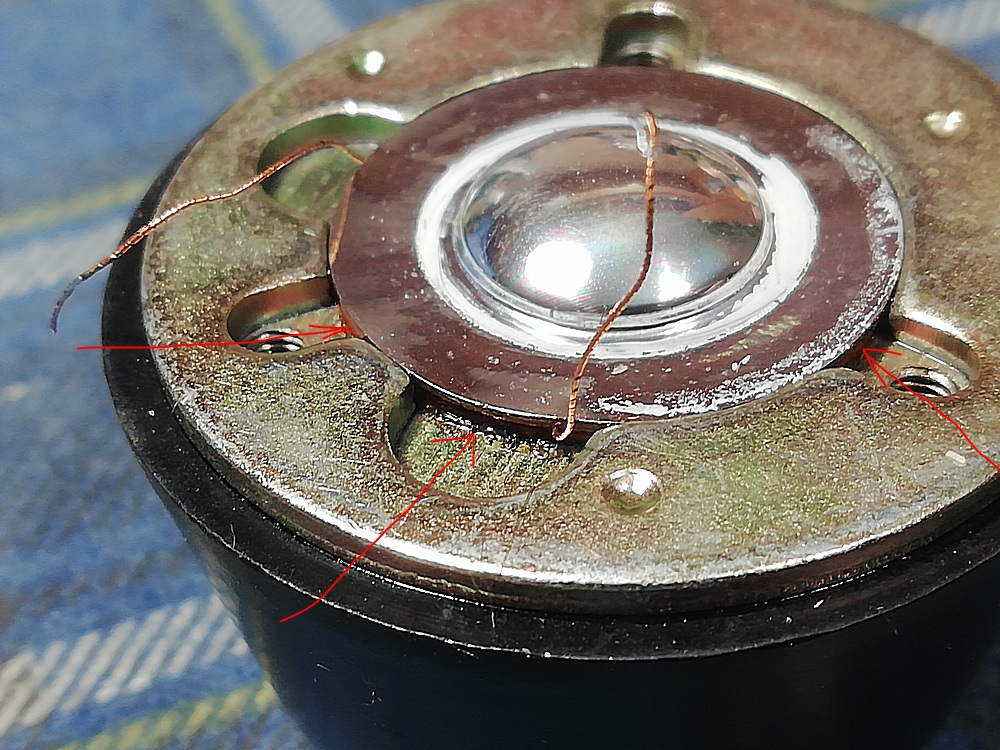Глазом, вооружённым лупой часовщика, в глубине явно различается алюминиевая вставка в виде кольца между керном и чашкой МС.