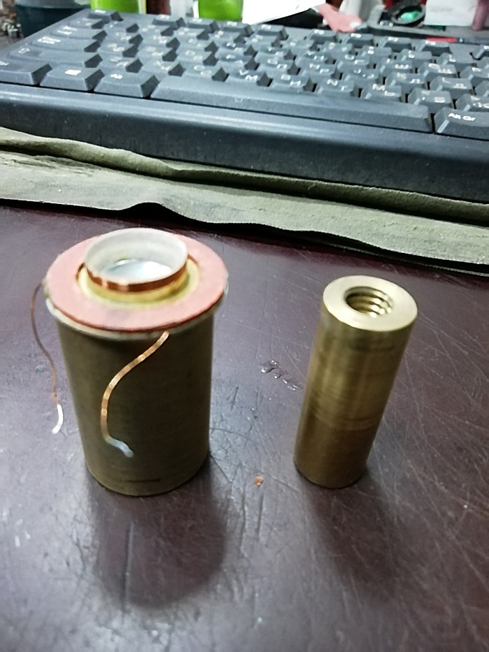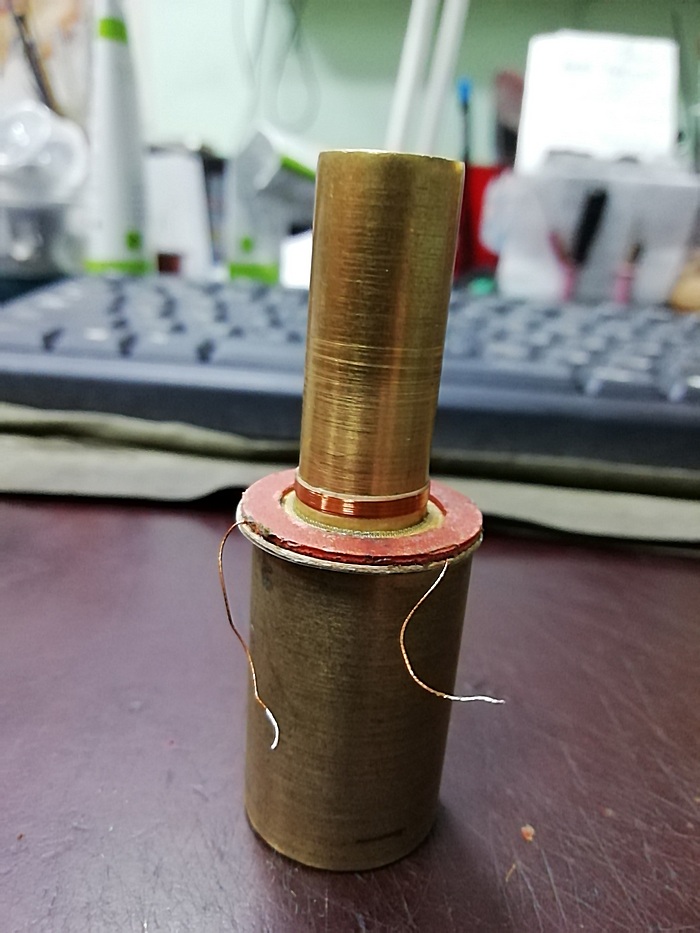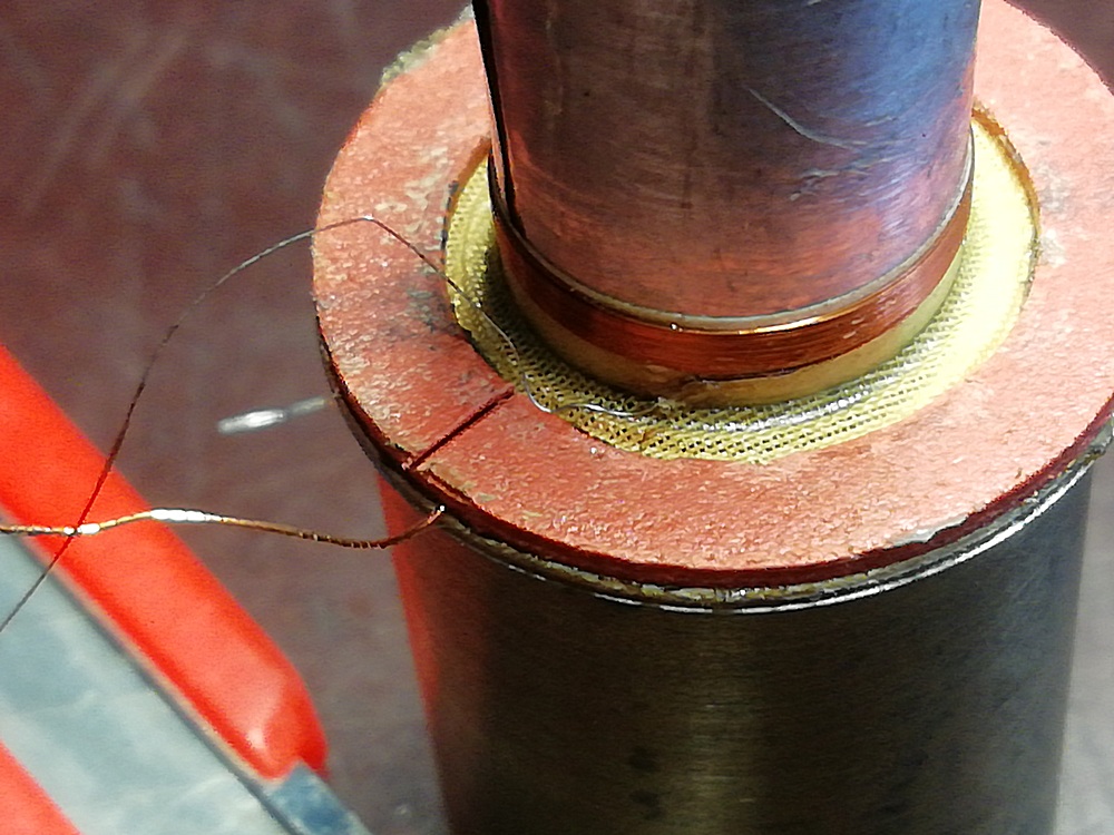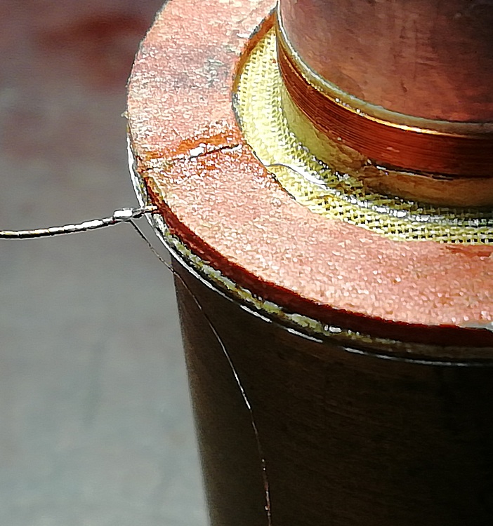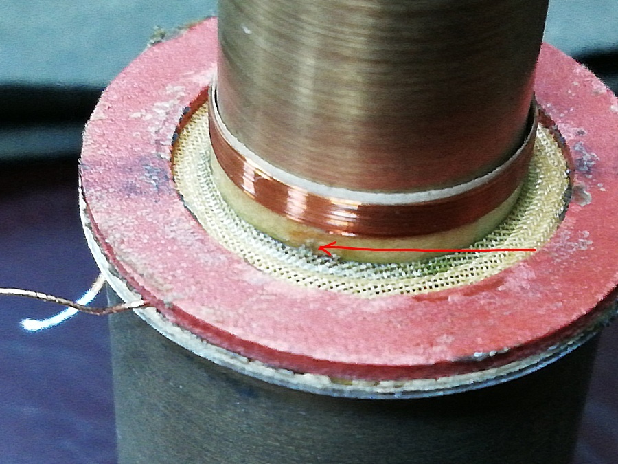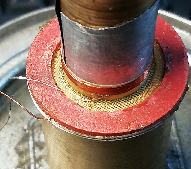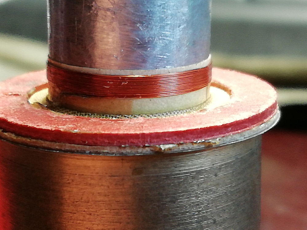Бумажный каркас. Внешне катушка целая. Без прогаров и смещения намотки. Вероятно нарушен контакт в пайке, что довольно часто происходит с катушками на алюминиевом проводе. И то хорошо! Акустике почти полста лет и случилось это только сейчас. Постараюсь сохранить родную...