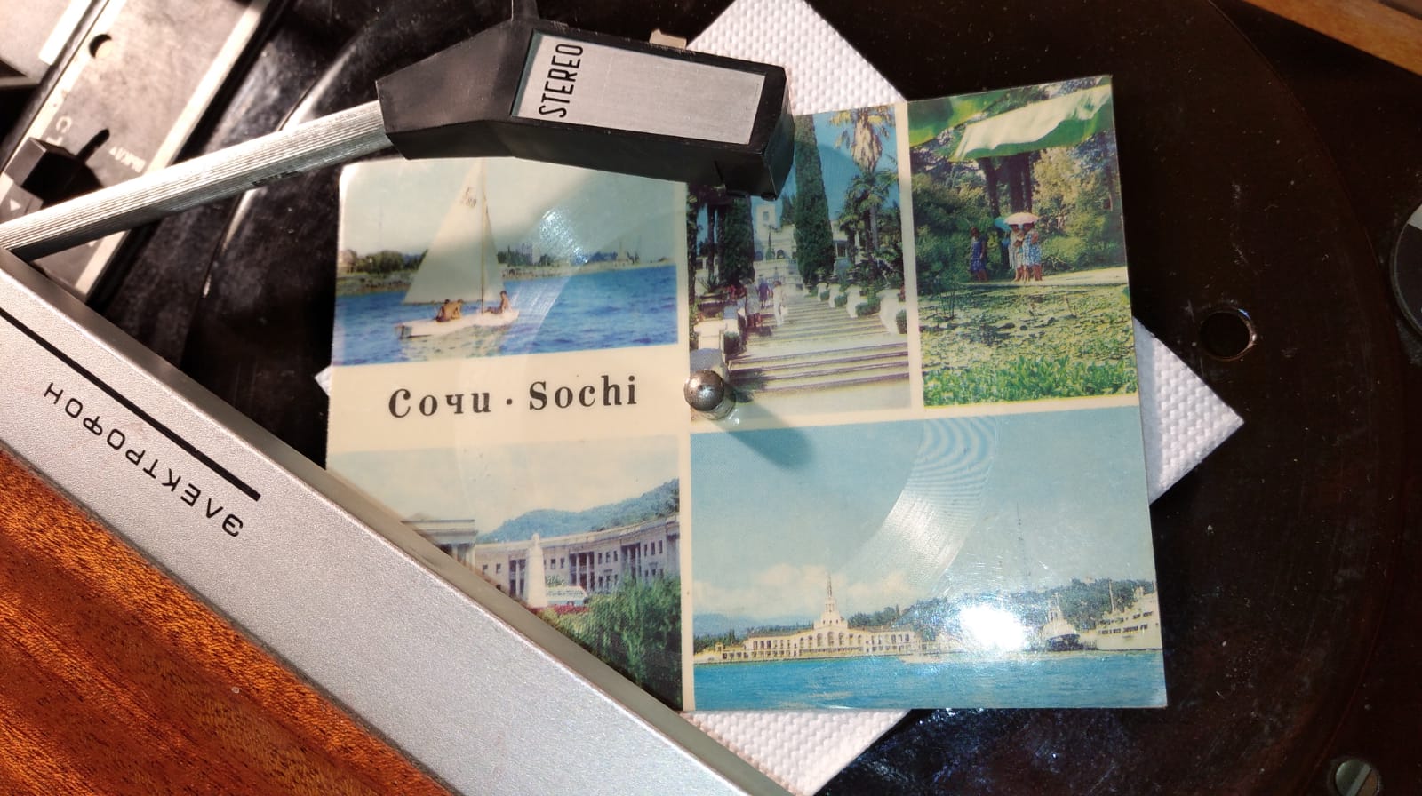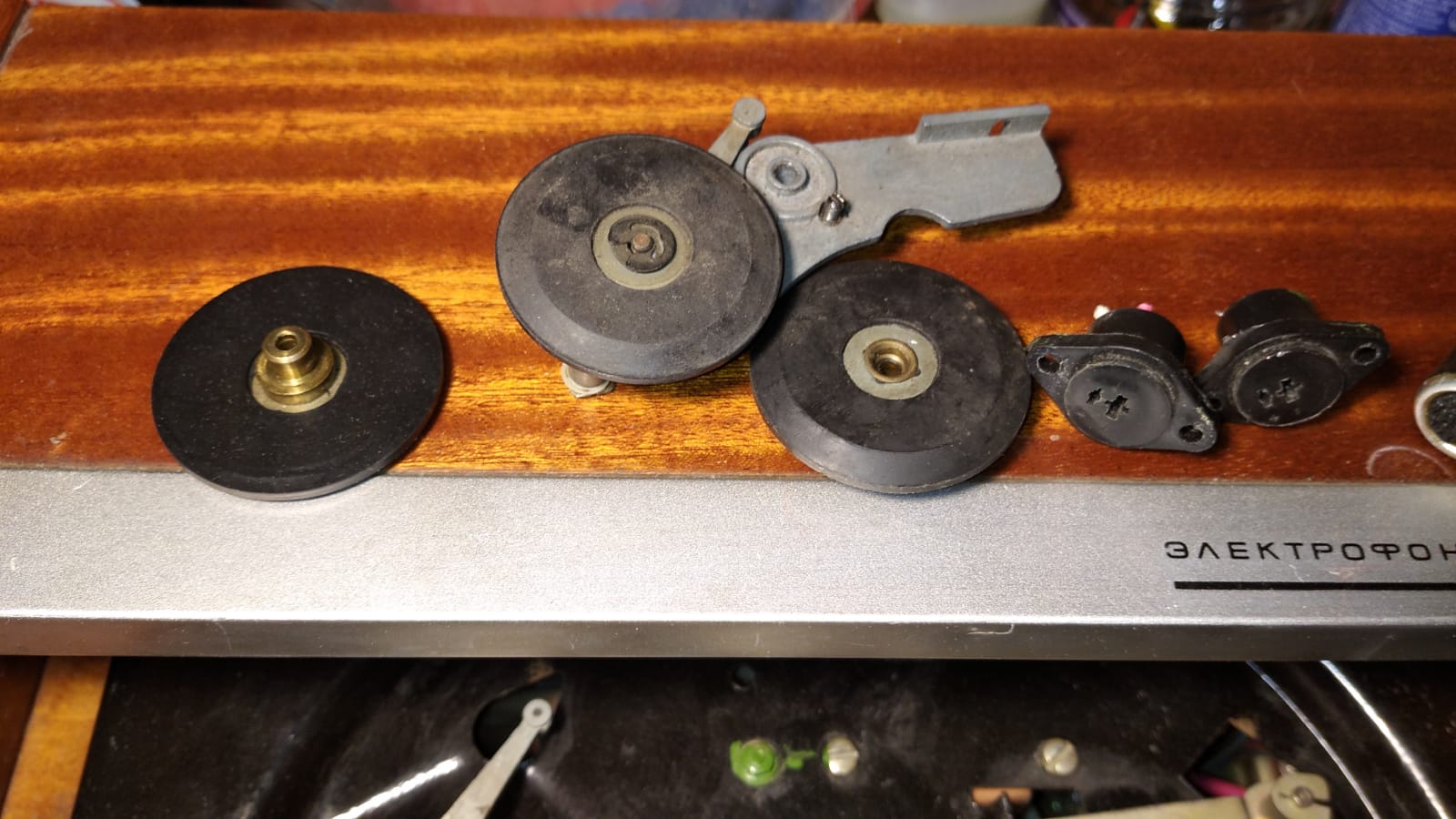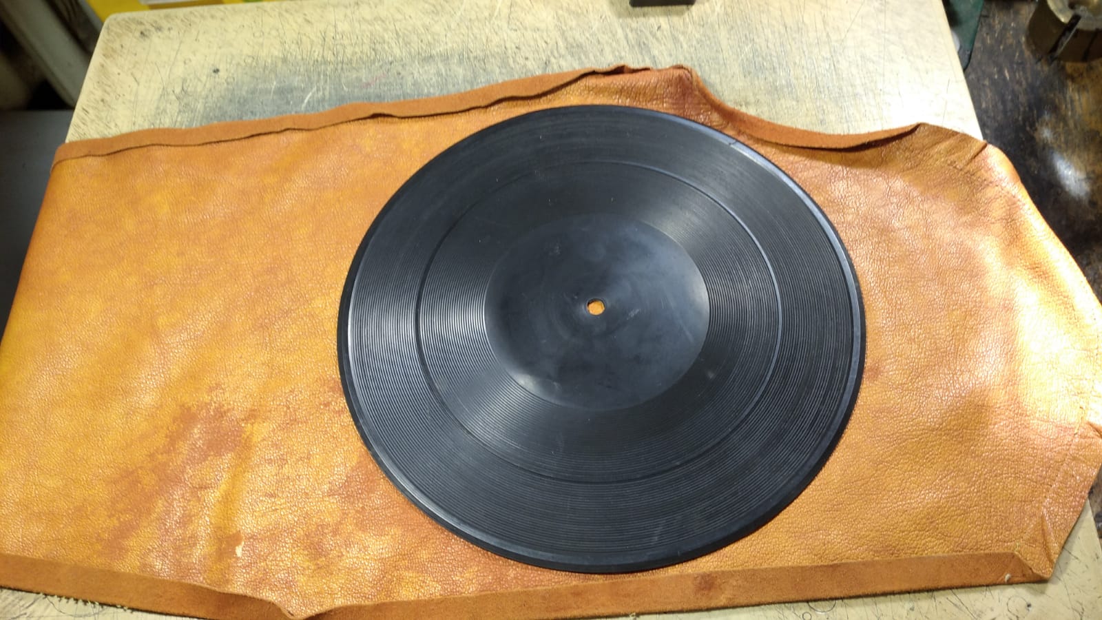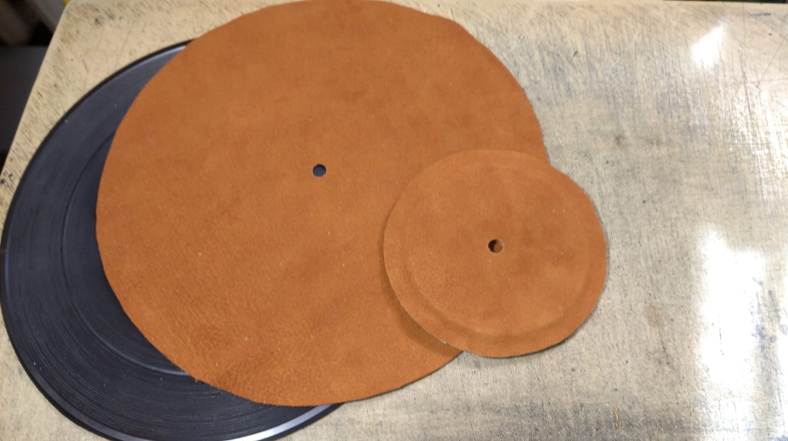 Сделал коврик дополнительный из тонкой кожи,с одной стороны как замша,а то кругозоровские пластинки на месте стоят под иглой на резиновом коврике)