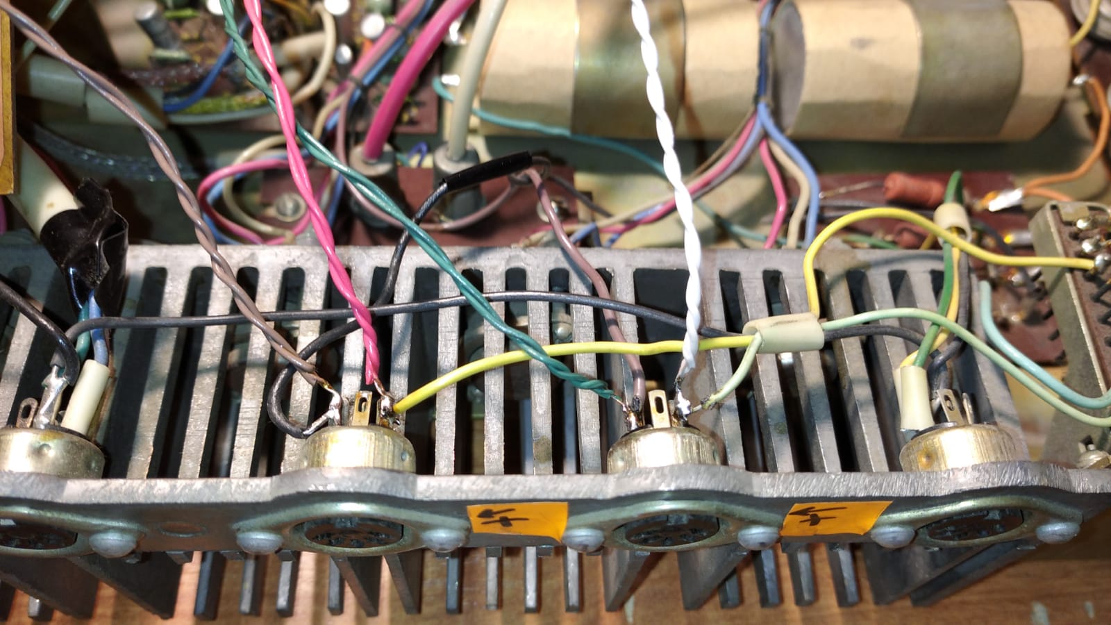 Помню черно-белый телевайзер Рекорд-335 (вроде так). Там выходной каскад кажись на 6П14П был, а на входе УНЧ стоял КТ315-й и питался от высокого напряжения. Никаких РТ не было, но звук мне нравился. Хочется, чтобы ООС по переменке была -- не могу слушать без обратной связи​