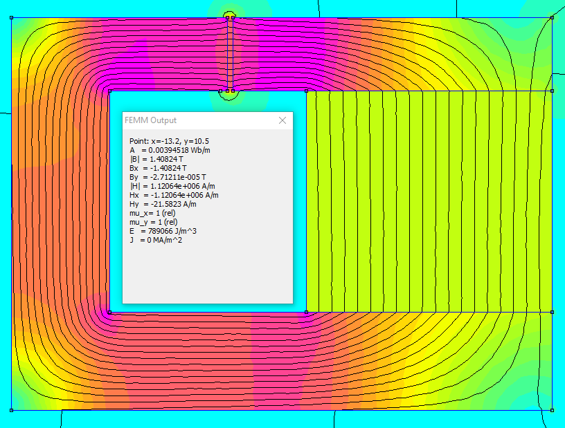 Так я не пользуюсь такой программой, где-ж мне чертёж взять с линиями и насыщением. У наших 4" ШП в зазоре 7.5х1.3 индукция 1.12Т с обычным магнитом добытым из динамиков типа 20ГДС, так ещё нижний фланец и керн - 2 разные детали, в сопряжении потери неизбежны. Поэтому и интересно почему программа больше чем 1Т не показывает.
