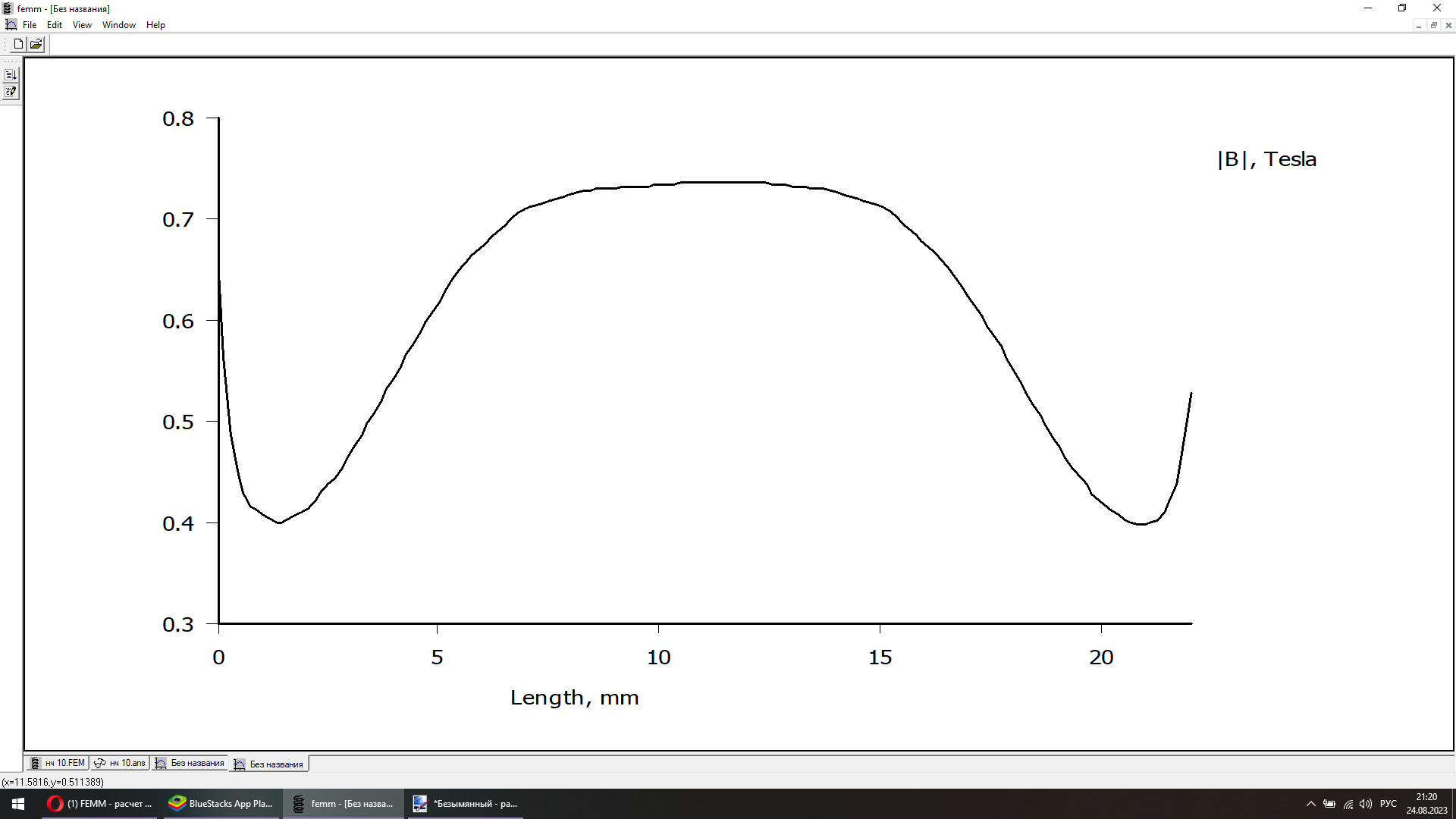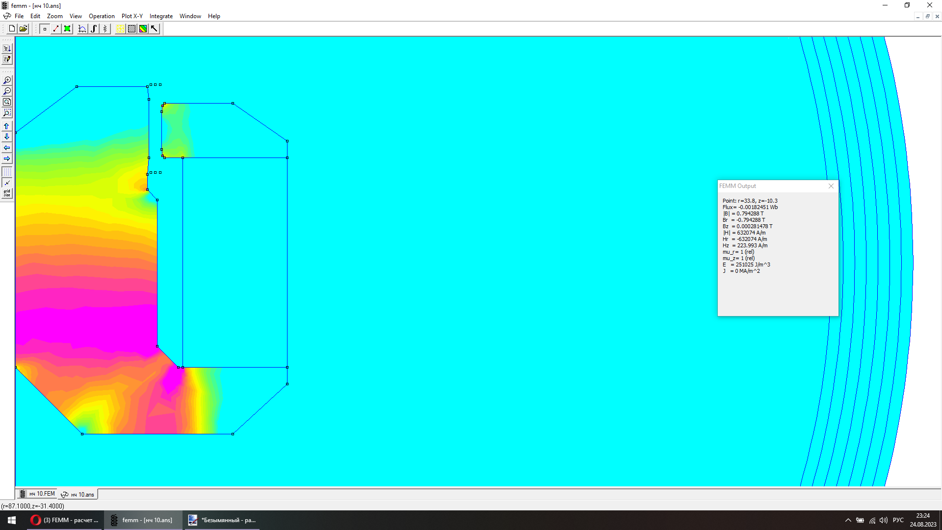 FEMM - расчет магнитного поля