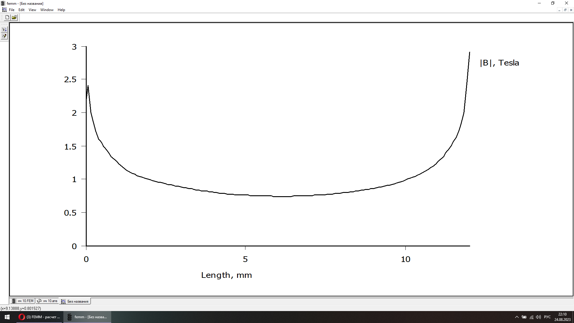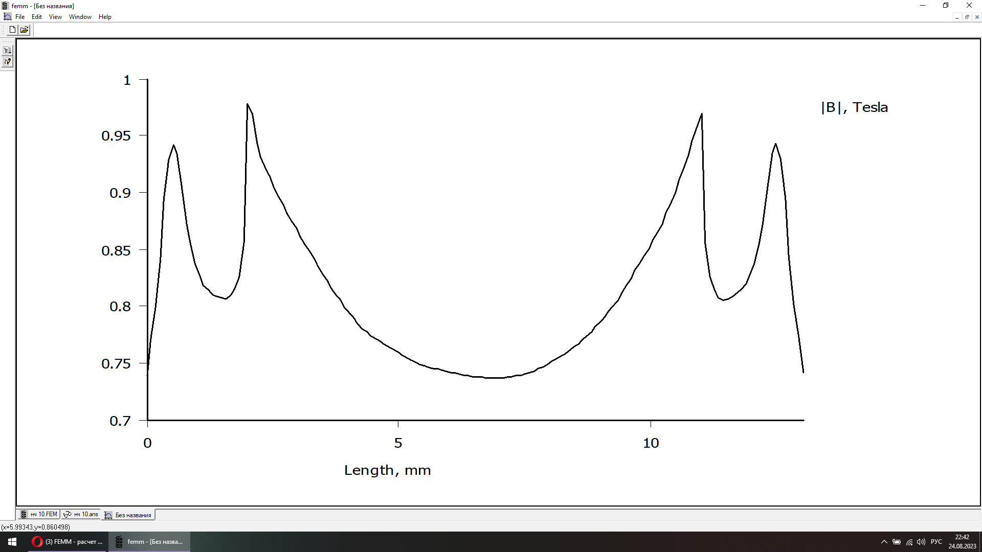 Фемм показывает 1Тл., в реале 0.9 с хвостиком.