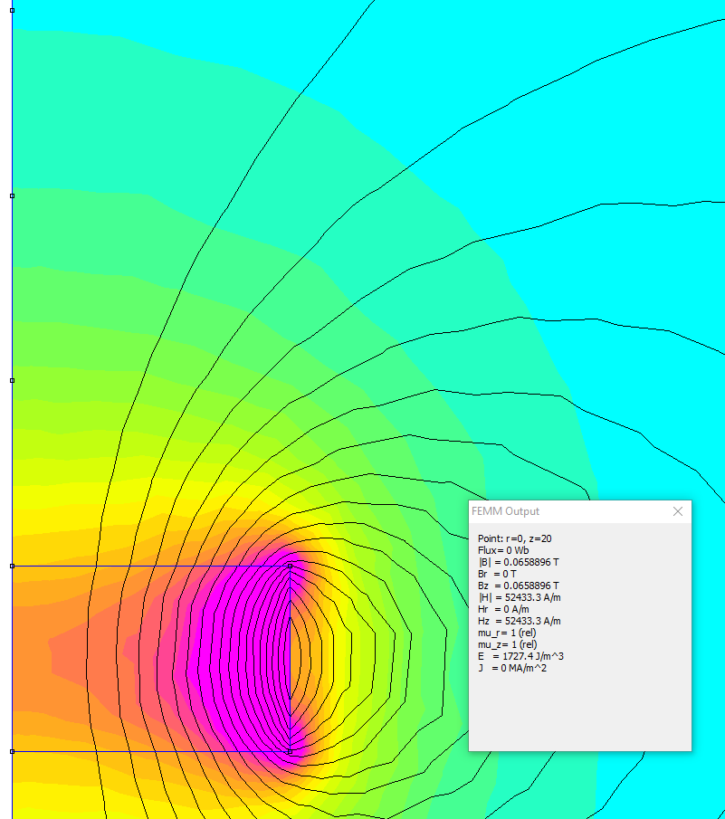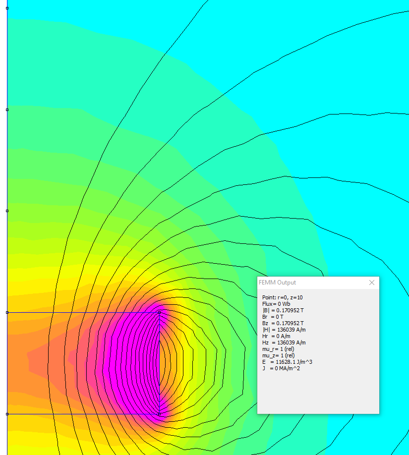 Я просмотрел, но не увидел в примерах, как можно посмотреть индукцию в определенном отдалении от лицевой части магнита. У меня максимально простая задача по сути, но читать тонну информации ради её решения - это очень нецелесообразно. У меня есть один магнит определенной ширины и диаметра, мне нужно смоделировать его и померить индукцию перпендикулярно этому магниту на разных расстояних. Это все.