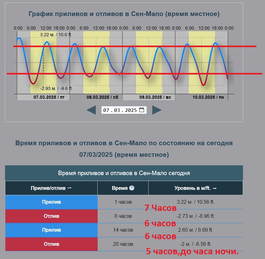 В своё время не смог найти никаких конкретных данных о приливах. Видимо, не там искал.