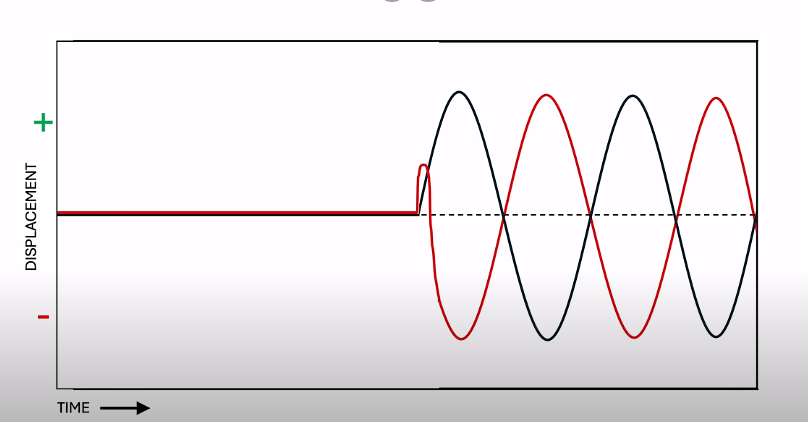 Ну так покажите результат решение дифа второго порядка которое должно показать какую форму звуковой волны создаёт диффузор динамика в начальный момент своего движения, а то само уравнение показанное вами ни о чём таком не говорит в явную, его решить нужно что бы увидеть или не увидеть то что показывает микрофон. Я это к тому, что заявление что если динамик идеальный то и звуковая волна будет идеально развёрнута на 180 градусов как то звучит весьма поверхностно.