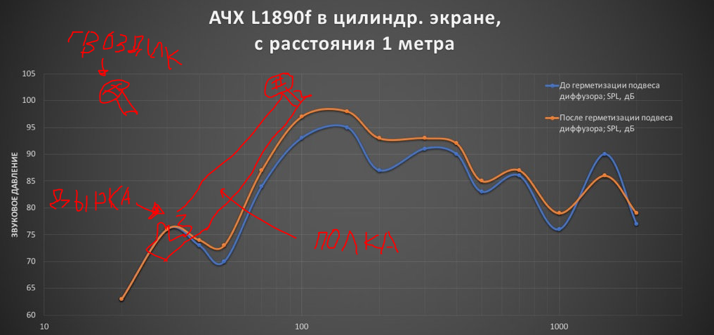 На какой одной? А то, что ниже 20 Гц по графику давление сильно больше - это моск автоматически фильтрует? В теме уже давно дан ответ, какой динамик и насколько больше давит, а так же по какой формуле это можно рассчитать.