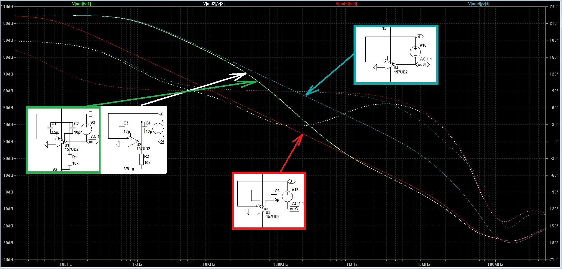 Однако, если глянуть на картинку то там есть кривые(две совпадающих) которые с "двумя конденсаторами и резистором", данную конфигурацию я успешно применял в своём усилителе, к тому же в звуковом диапазоне кривые совпадают с "совсем без конденсатора" а на ультразвуке переходят в "конденсатор 5пф". То есть крайне эффективно работают.
