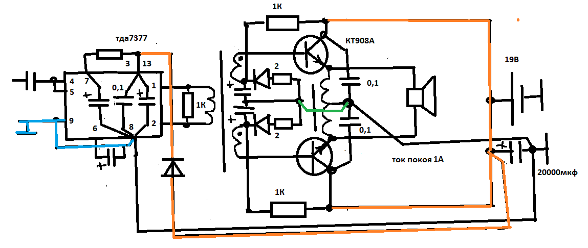 вот полная схема с драйвером и разводкой земель классА на кт908А