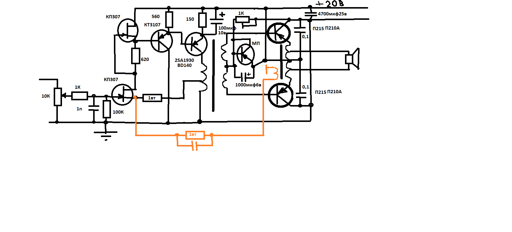 Мне жутко нравится ваша предыдущая в А режиме с переменником между эмиттерами и одним питанием. Скоро соберу, очень нужна такая штука.