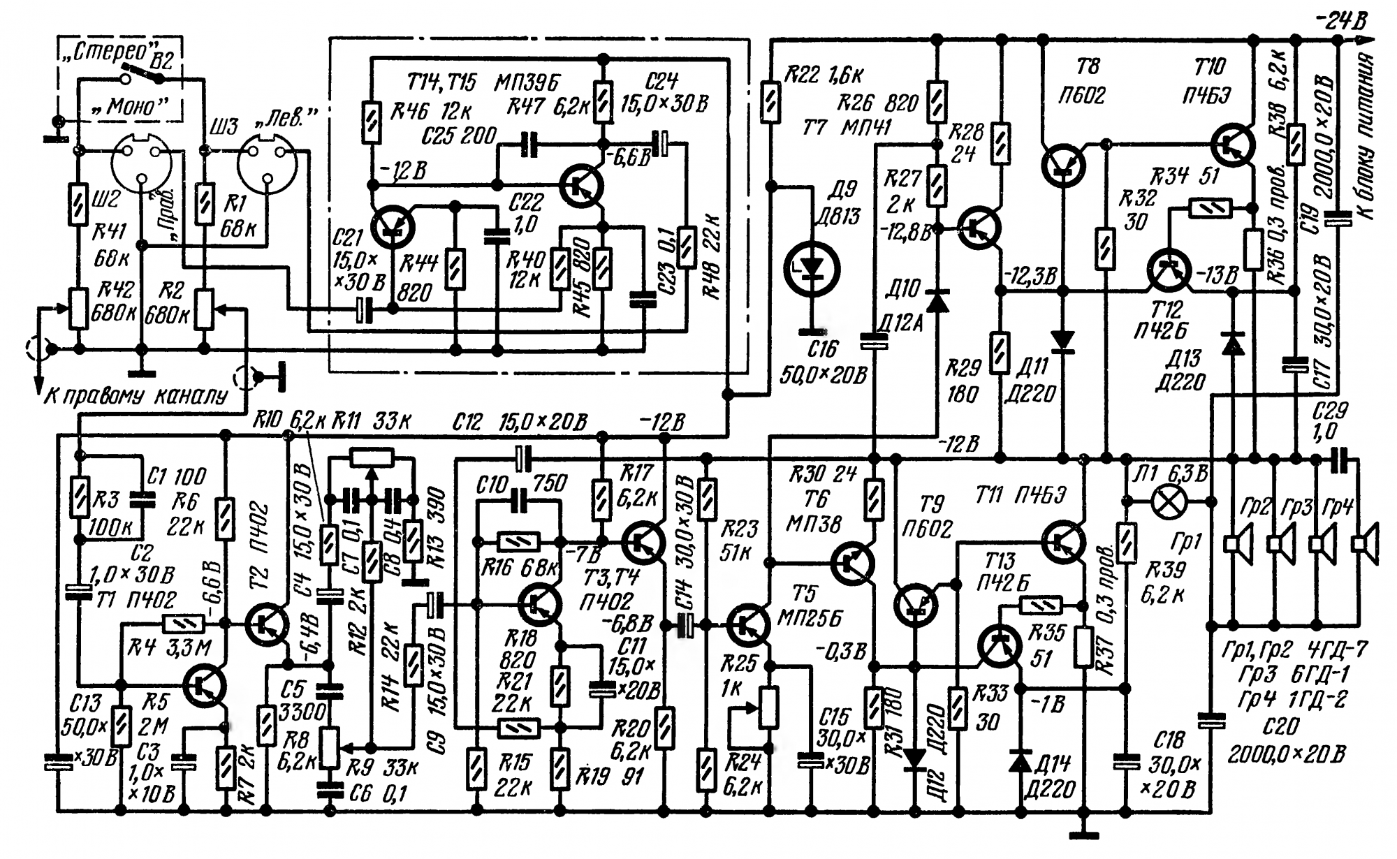 Собирал ещё учась в школе .Колонки рассчитывал по Эфрусси на 10гд36 .Бас до сих помню какой был от Бони М. Вот убрать у него недостатки бы ...Юрий Робертович нашел я эту статью. Автор Вагин В. Только схема очень огромная, куча деталей, а параметры скудны, диапазон: 30-15000 Гц. КНИ - 2%. На фото я увидел платы с 5 транзисторами, вот и заинтересовало.