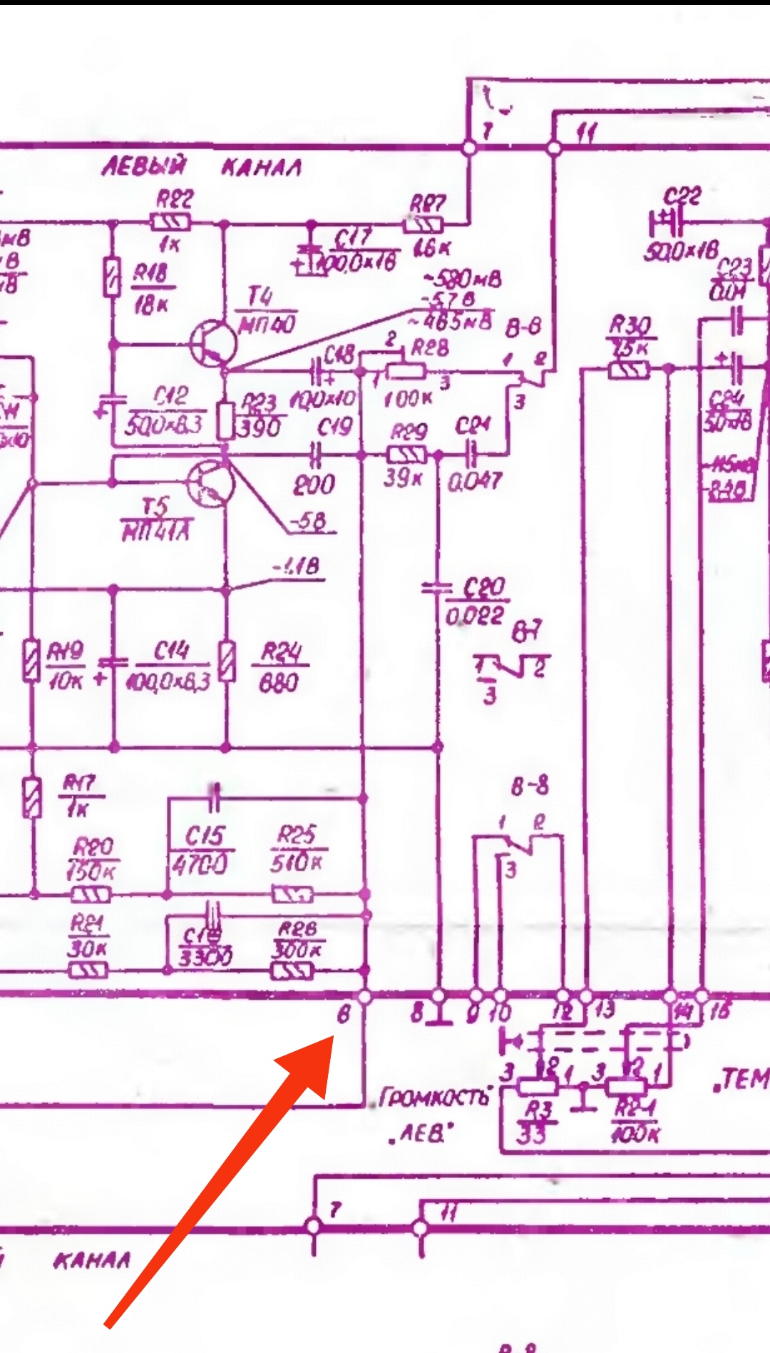 Вот от кт815 провод идёт в точку коммутации 6