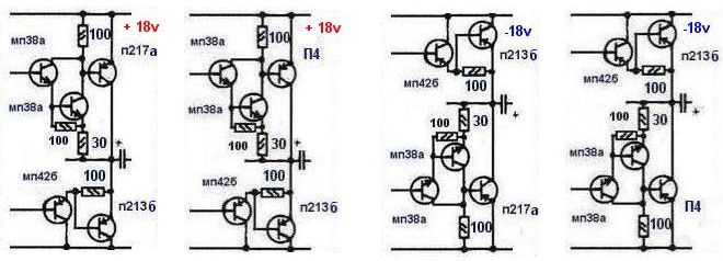Остается применять скоростные средней мощности и мощные транзисторы, отказавшись от применения всяких тормозов типа МП40 и МП10 . ГТ402 и 404 советовать не могу, нет их в коллекции, опыта возни тоже нет. И если религия позволяет применить на входе нормальный современный кремний, то результат будет достойный.