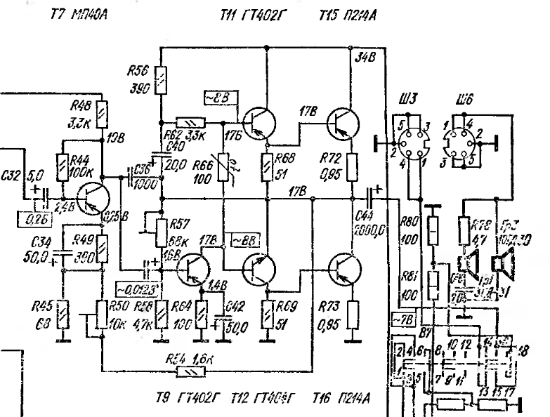Питание там однополярка, -34В. На выходе 6 Вт, при Кг = 2,5%. Не сотых долей процента, а именно полновесных процентов.