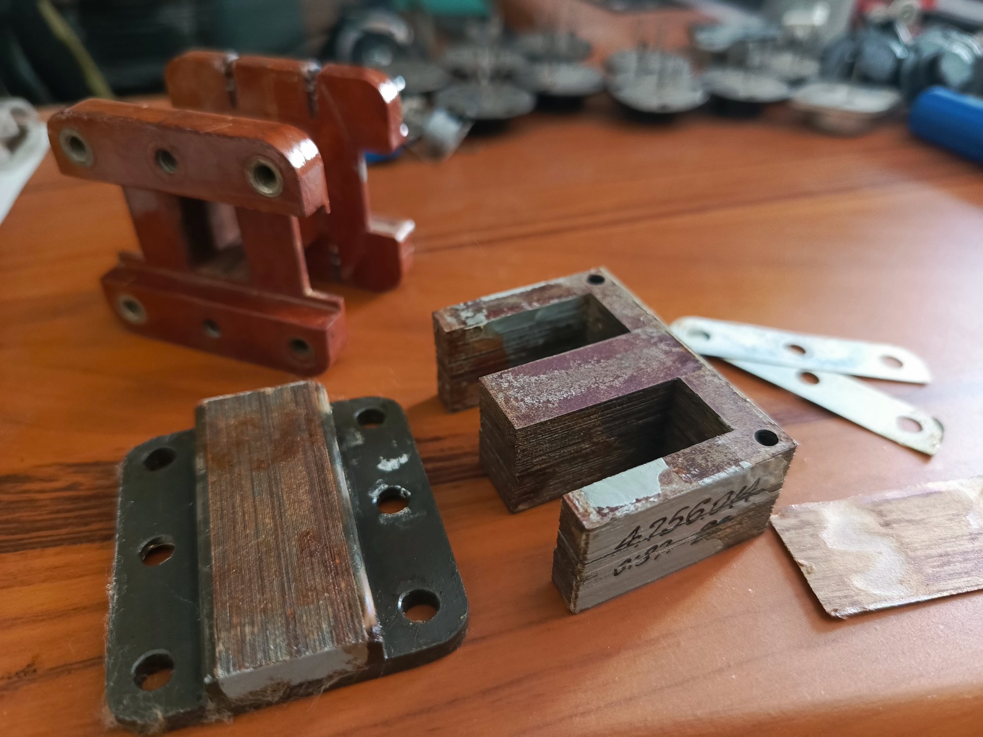 Зазор уменьшу, но надо как раз таки высушить клей. Транс у меня необычный. У него Ш пластины должны быть приклеены к катушке, а нижняя часть с металлической пластиной винтами прикручивается к той же катушке, общей стяжки нет и если Ш пластины не приклеились, то их выдавит вверх.
