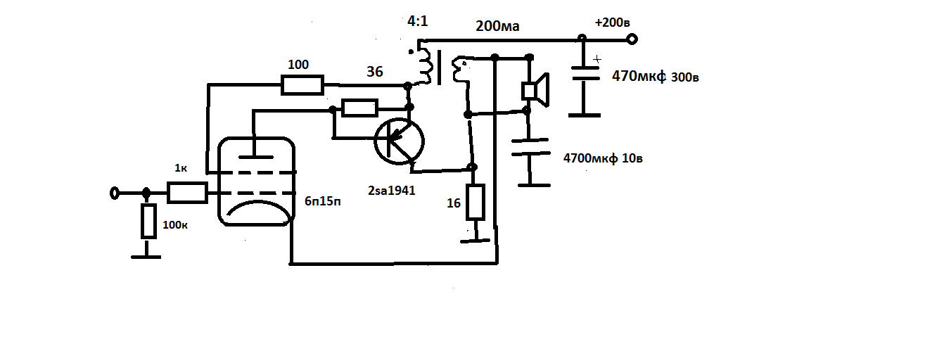 но тут 36ом и напряжение примерно 190в с учетом падения на трансе и смещении 4в на 6п15п ,просто не знаю как 6п15п при 150в работает поэтому проверенные 200в питания применил