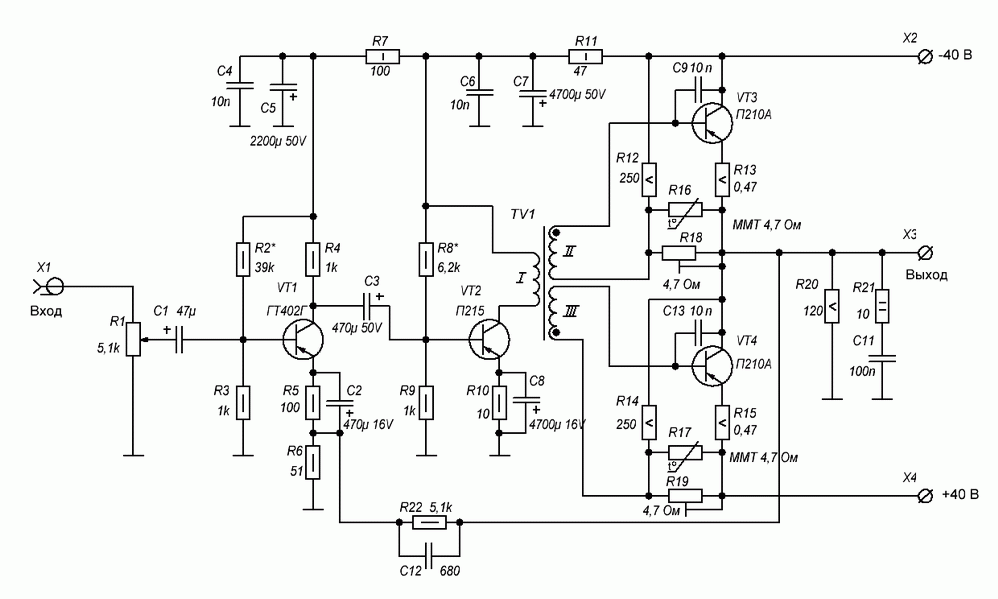 Хорошо, пусть будет п210 на выход а на предвыход п605 поставить и на вход гт404? Кремний не нужен.