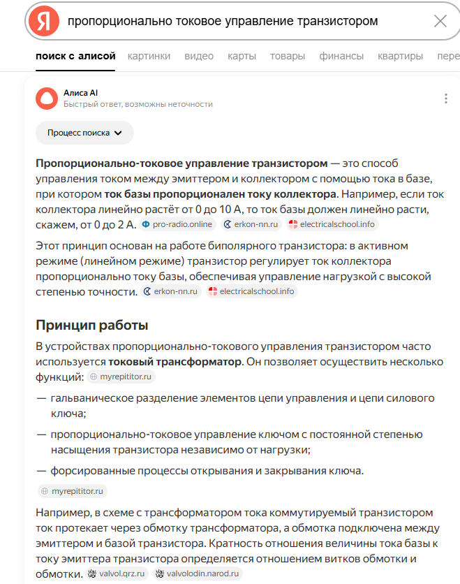 Вот я повыше книжку Айсберга привёл. Вы могли у ИИ не спрашивать. Именно это и именно так там и написано. Я это в детстве читал, ещё до того, как схемы начал сочинять. Т.е. я даже не начинающим был, а вообще никем. Вы мне схему, где транзистор управляется от источника ЭДС между эмиттером и базой так и не покажете?