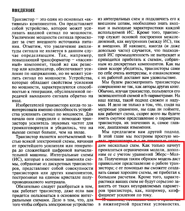 Так там же чёрным по белому написано в том тексте, что я привёл - почему. С какого момента начинают проявляться ограничения токовой модели? Всё что нужно знать о модели Эберса-Молла я уже написал выше -там три пункта. Практической пользы от полной модели никакой, т.к. в даташитах не приводятся параметры это модели. Они есть в параметрах SPICE-моделей и могут учитываться в симуляторах. Но точности вычислений это не добавит, т.к. параметры эти - усреднённые и у разных производителей разные. Стабилизация режима транзистора производится схемой его обвязки, через стабилизацию токов.