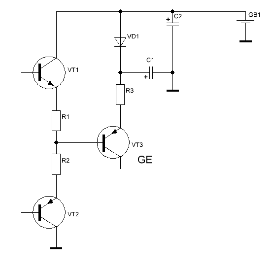 Если в Ройял де Люхе входной транзистор взять Р и крутануть эмиттером кверху, получим стандартную схему.