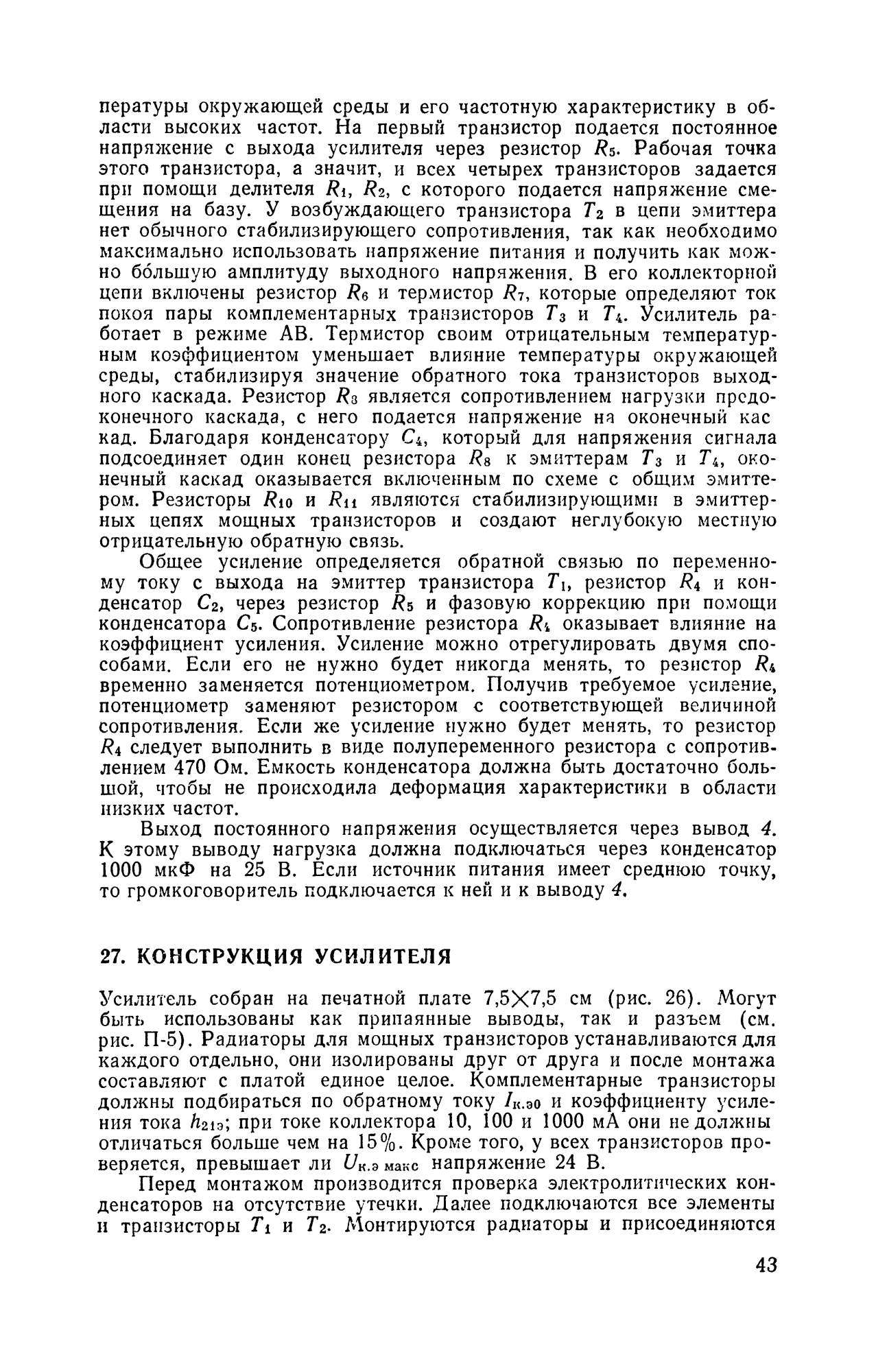 Схема рис 27 уже проблемная, два недостатка, низкое изначальное усиление и входное сопротивление, требуется согласующий каскад. Хотя, как-то играть будет .