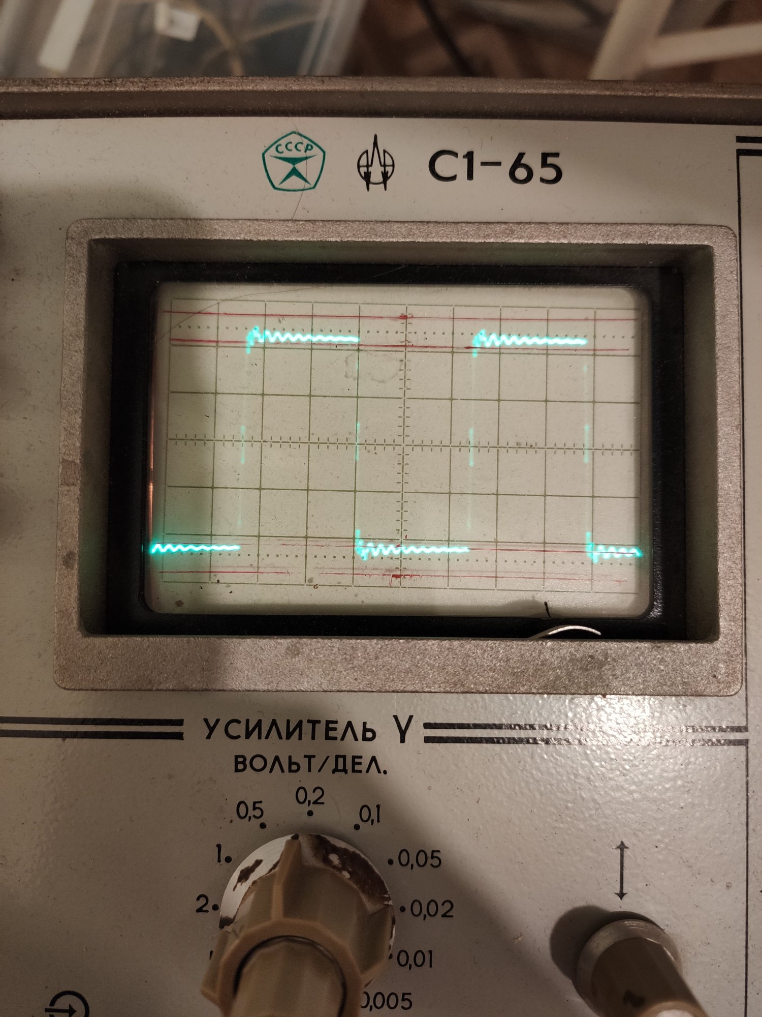В сетках всех 6С15П - они внизу, и 6С45П - они вверху стоят противозбудные резисторы. И без МКТ, а просто с разделительным конденсатором всё прекрасно. И синус и прямоугольник нормальные.