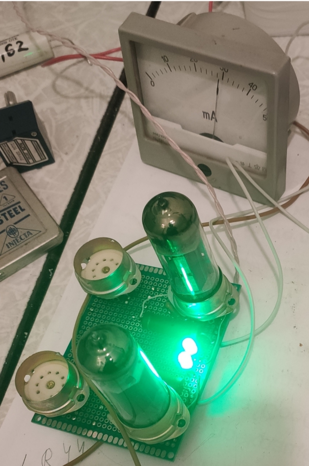 По приборам на нагрузку 10 кОм работает, хоть это и неправильно. Сюда же можно легко воткнуть ту же 6С45П, цоколевка оказалась близкой.