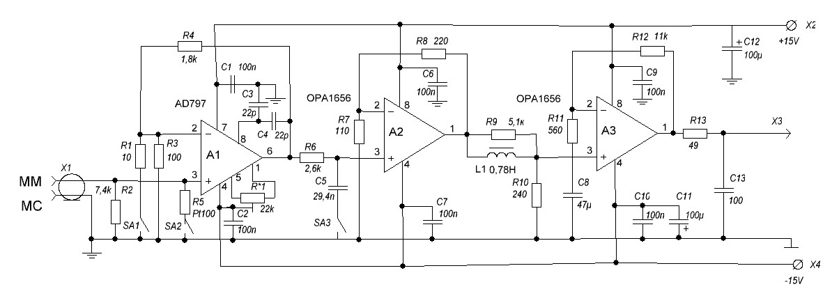 Тут по новой захотелось попробовать AD8429 малошумящий инструментальный усилитель с шумами по входу как у AD797, но высокоомным, как раз для ММ. Почитал как люди делают.