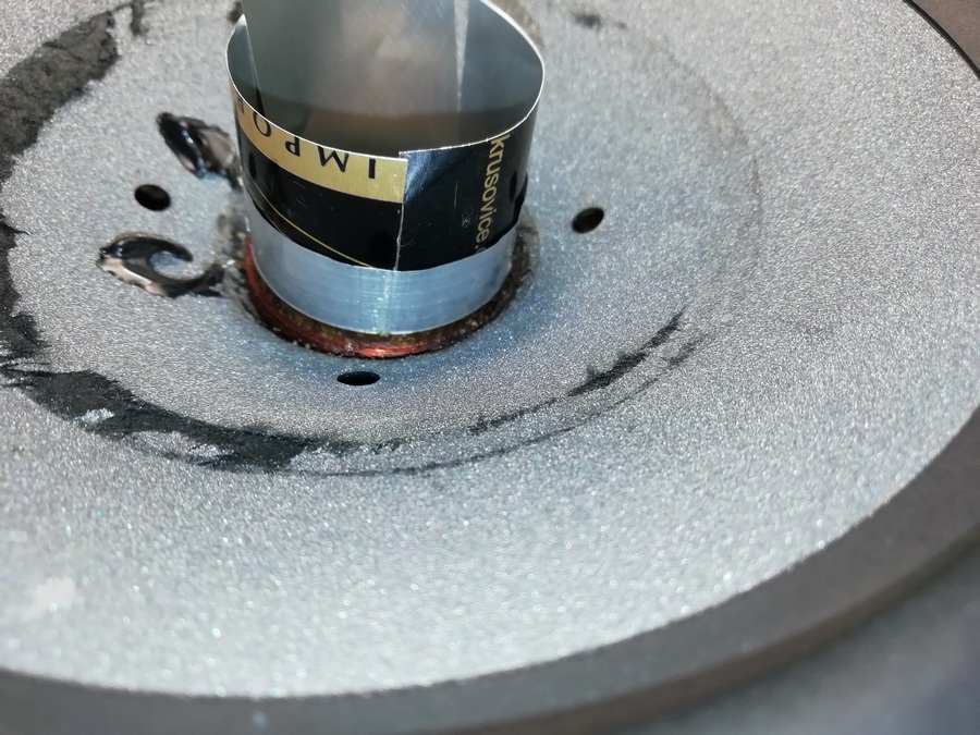 Стык диффузор / катушка были аккуратно пролиты раствором по всей его окружности