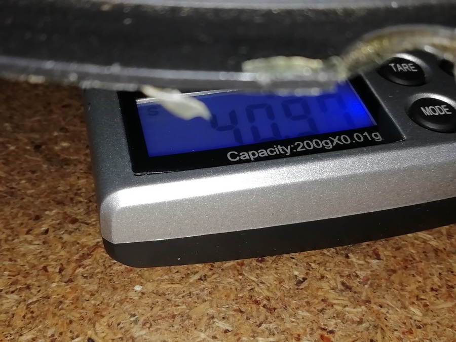 Клей с подвесов не снят, припоя на кончиках поводков с виду вроде одинаково, а на вес сказывается. Считаю, что в данном случае взвешивание - только потеря времени.