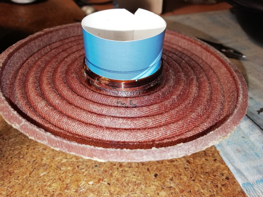 Установил катушку на МС по разметке, проверил через тепловой зазор (виден верхний уровень катушки) и набросил на неё диффузор. Всё совпало с измерениями высот, ширин и глубин.
