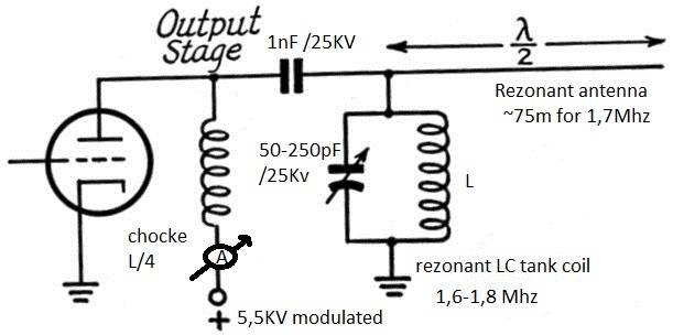 В отличие от традиционной адаптации к четвертьволновой антенне где обычно используется адаптивный ПИ-фильтр, я чаще всего с успехом использовал полуволновую резонансную антенну, где на антенну подается максимальное RF-напряжение вместо максимальный RF радиочастотный ток антенны как при использовании четвертьволновой антенны,