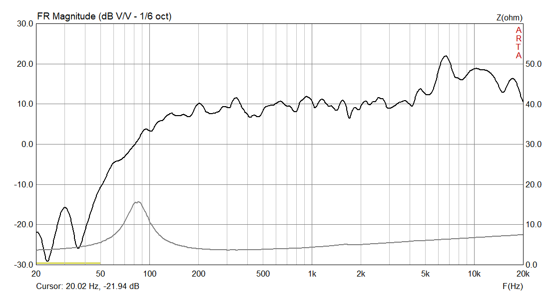 То что в нижнем регистре изменилось, это разница в электрический и полной добротности (заводская Qts 0.9/с КЗВ Qts 0.53). А вот что делать с этим прострелом сверху? Уши этот волдырь сверлит просто дико, Слушать можно, наверное, но если только 60+ возраст.