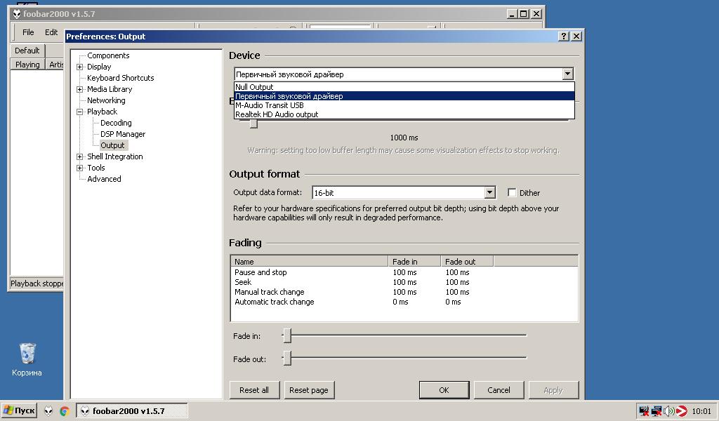 Я вот чего не понимаю: в режиме ASIO я могу лишь выбрать частоту (до 48000, хотя меня для воспроизведения вполне устраивает 44100), но не могу выбрать битность - только 32 бита, в то время как в режиме директ могу выбрать от 8 бит и выше (обычно ставлю 16), а частоту до 192000. Особой разницы между 32 и 16 не слышу, но теоретически что лучше из всех доступных режимов?Посмотреть вложение 15854