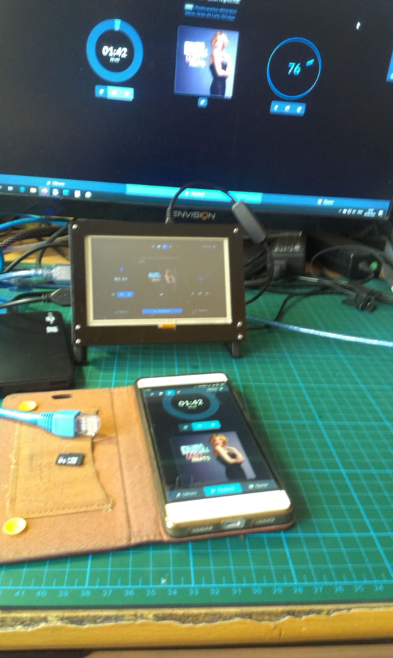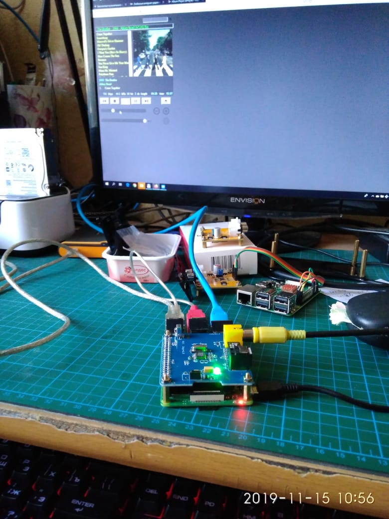 Raspberry pi 3b c 5" экраном, плеер runeaudio, цап по usb. В момент этого фото цап на pcm1794 и pcm2706 из поднебесной. Пробовал с runeaudio несколько usb цапов, определяются удачно кроме универсальной платы combo 384 с usb и коаксиальным выходом. Обычная "аманерка" определяется без проблем.