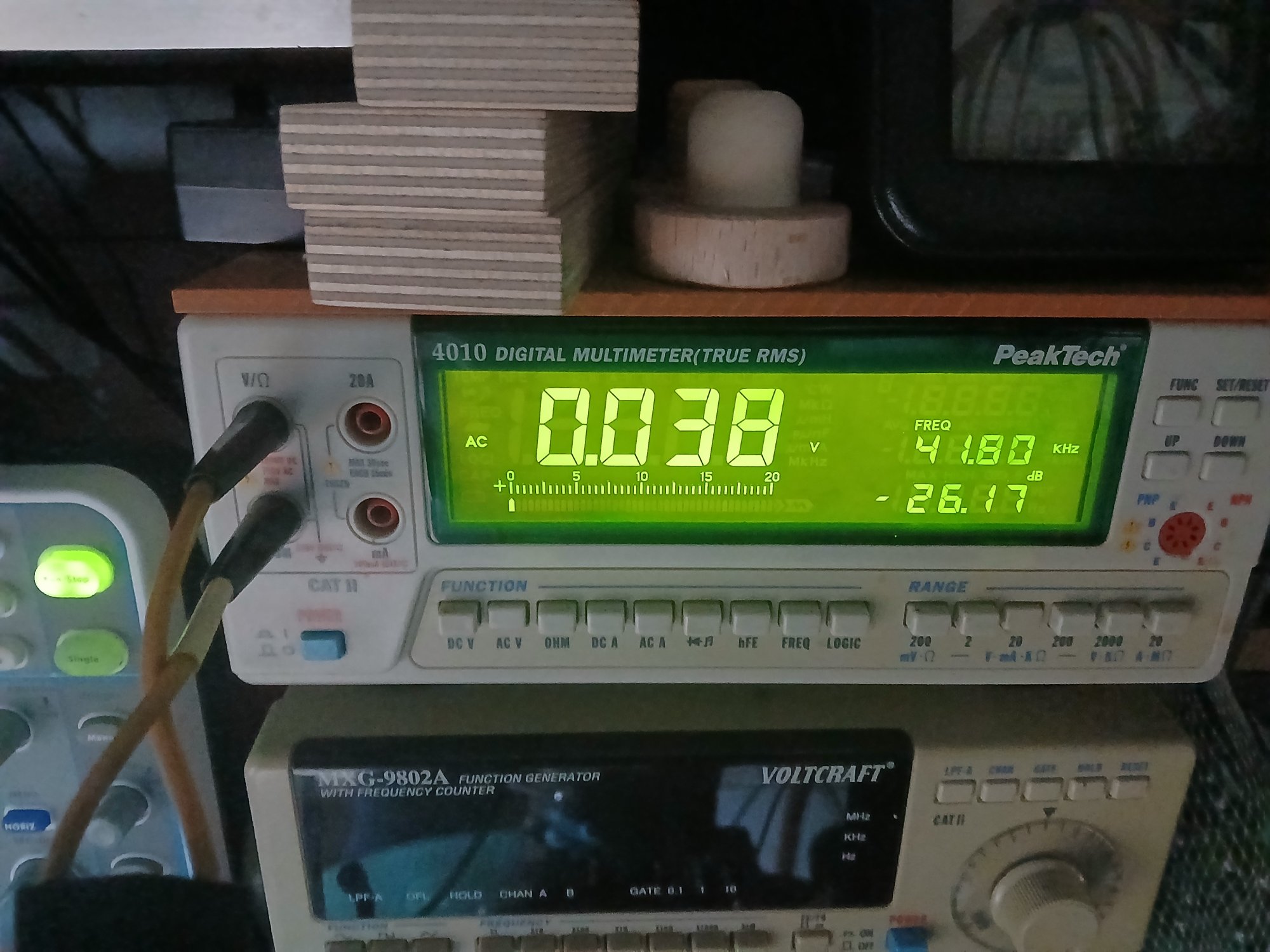На пиле на первом месте Siglent, точь в точь. На втором Peak Tech, почти точно, на последнем знаке чуть меньше показал.