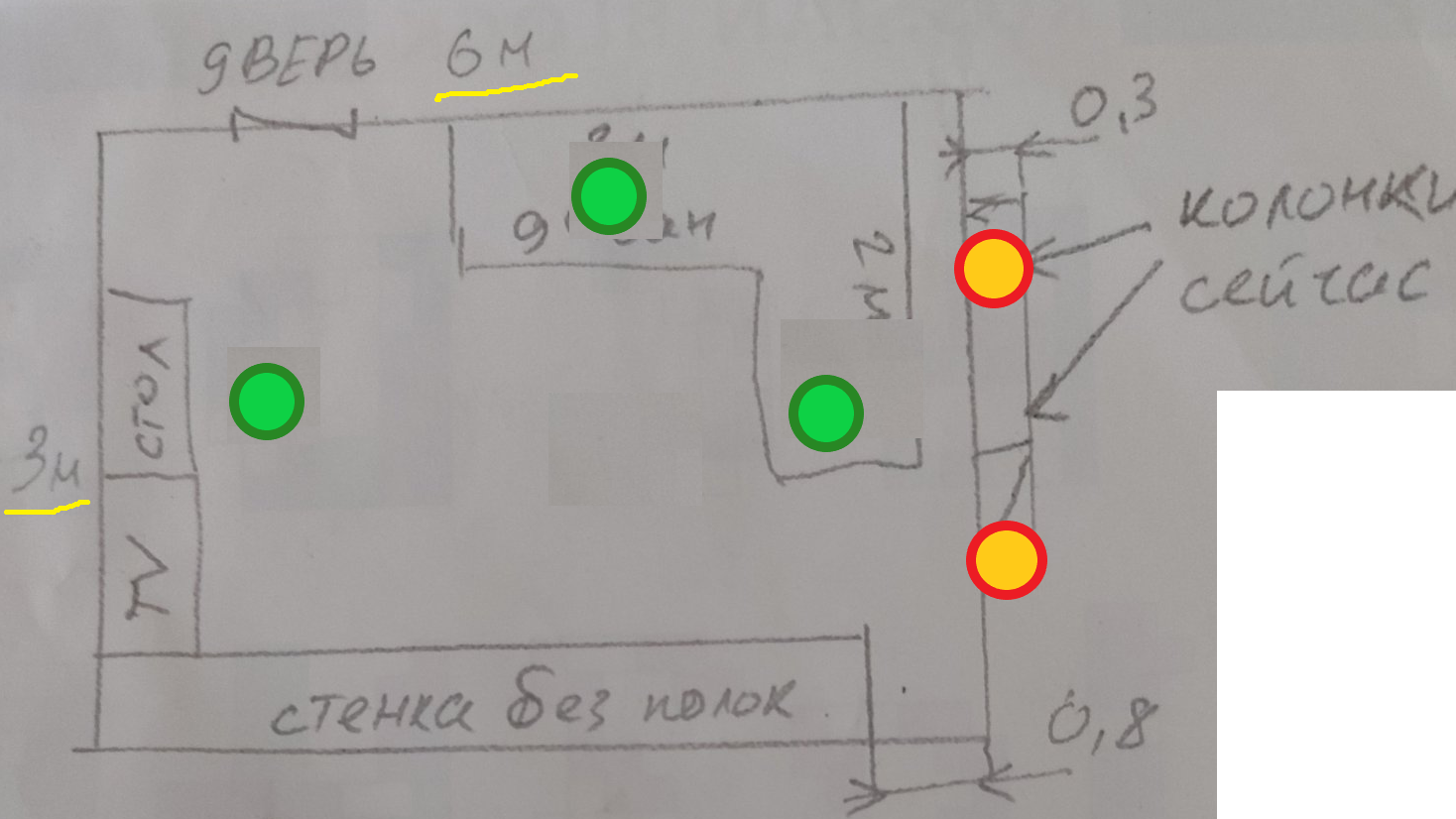 добрый день!замер комнаты в указаных точках.фи закрыт.колонки направлены паралельно комнате.микрофон на уровне ух и почти между динамиками.направлен на колонки.максимальное окно.диван разложен.