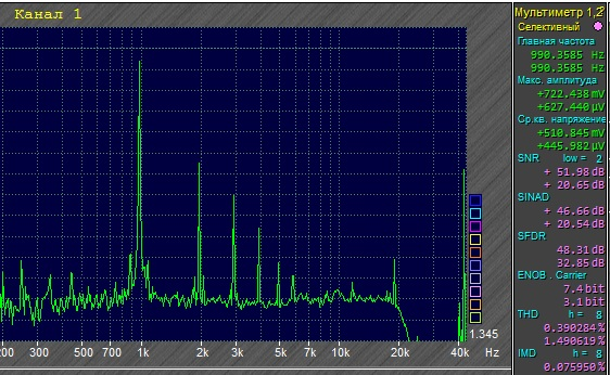 Ваш спектр 5,3в 8Ом Ixx 800mA THD=0,265% Мой спектр 5,1в 8Ом Ixx 1200mA THD=0,39%