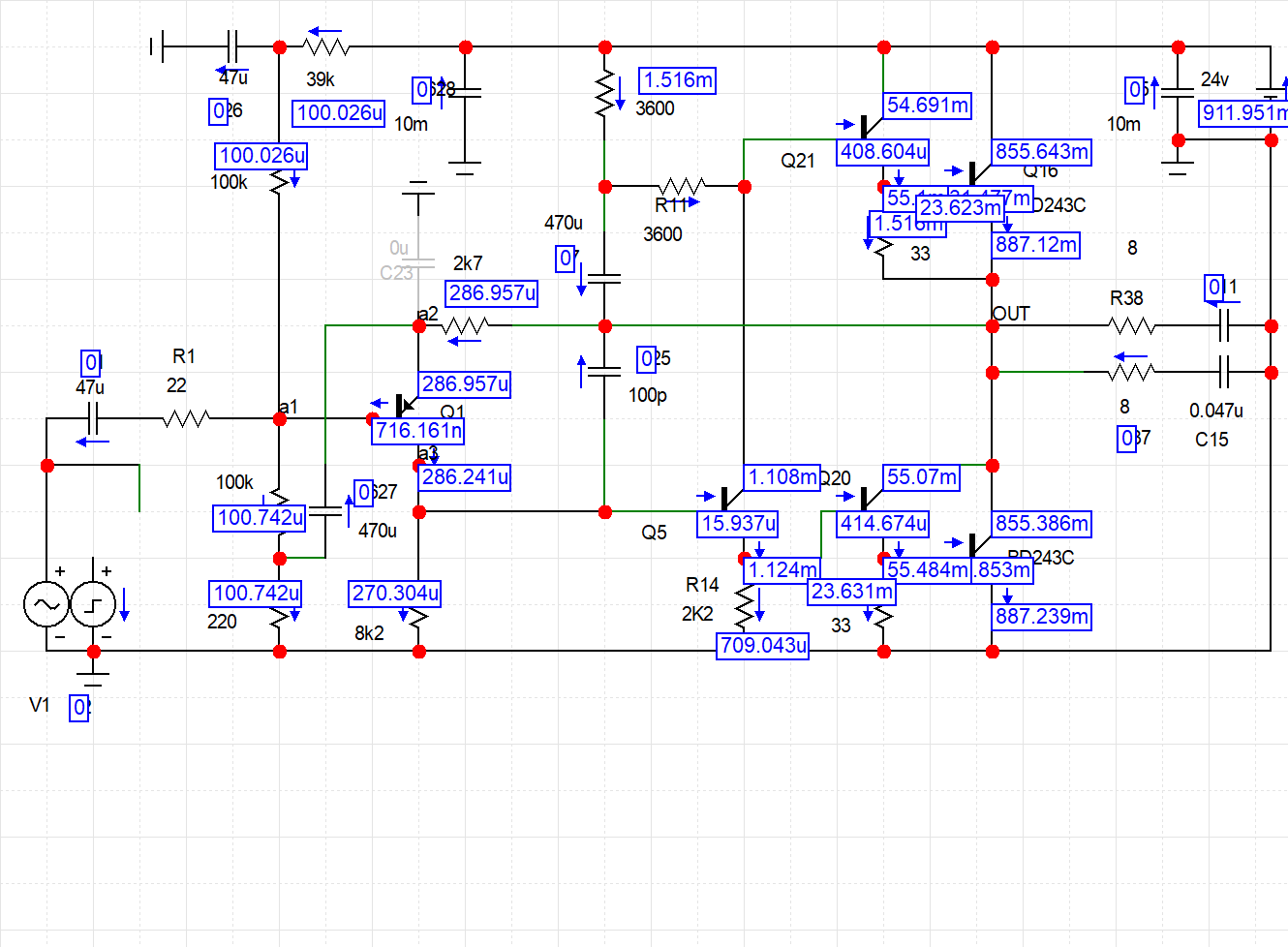 Да Худ же рассказывал в воспоминаниях,что пришёл как-то на работу,а его коллеги сказали,что на ЭВМ пересчитали его выходной каскад и оказалось,что если они поставят составные на выходе,то искажения упадут до 0.03% как минимум.Сказано-сделано,к вечеру они это сделали в металле и сняли характеристики которые подтвердились.Но в слепом тесте все отдали явное предпочтение Худу,на этом модернизацию и закончили.Прочитав это я ещё раз убедился,что мои уши меня не обманывают,схемы с несколькими деталями звучат более натурально,но требуют качественного подбора и вылизывания.