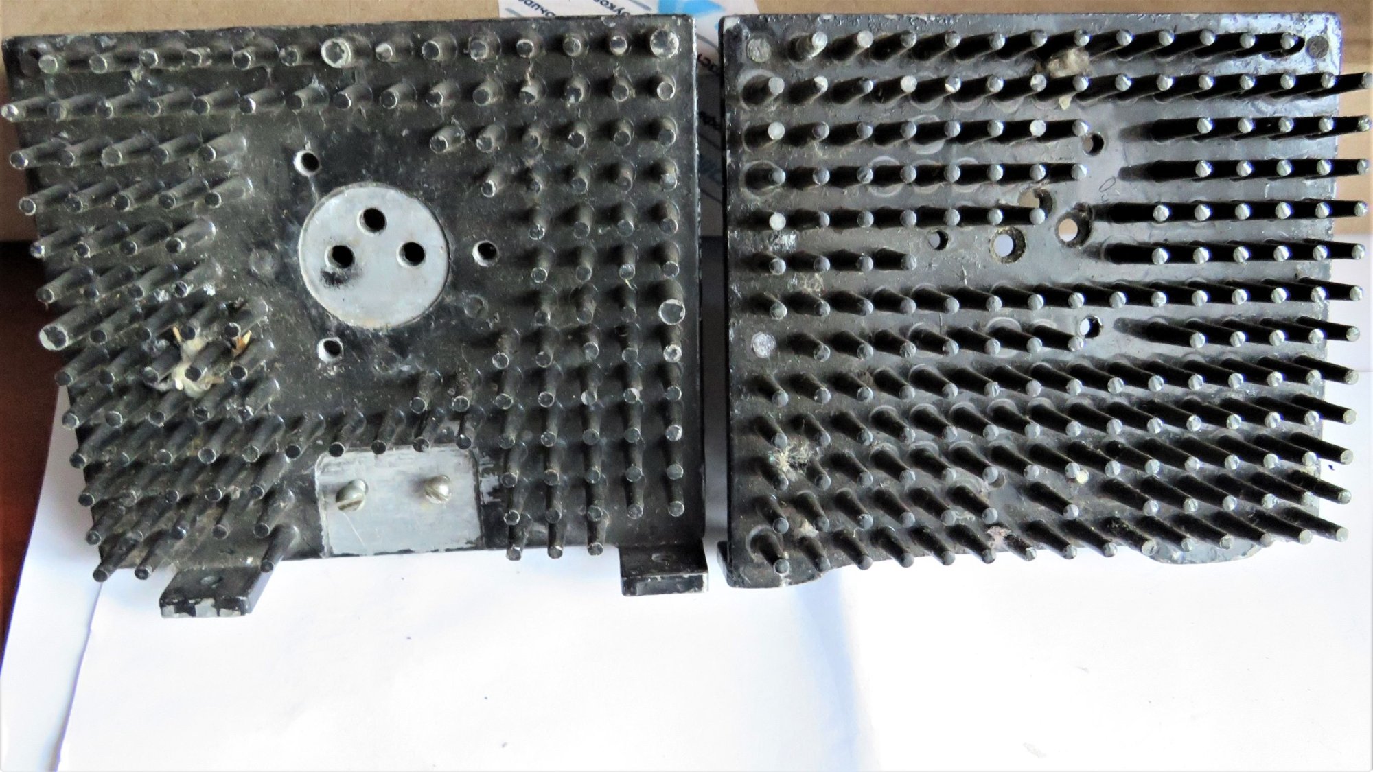 На толстые боковые радиаторы цеплял не уголки, а толстые бруски-прямоугольники, изолированные от радиатора слюдой. Отверстия в брусках под крепеж пары транзисторов в корпусе ТО-3.