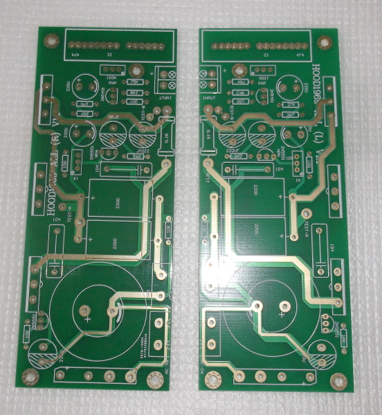 Я нихрена не пойму-схема всего на 4 транзисторах ОЧЕНЬ широкополосна (до 2 мГц, мощность до 200кГц).Зачем весь этот гемор с печатками !Если вы хотите усилитель Худа,так и делайте как Худ! Все свои варианты усилителей Худ делал НАВЕСНЫМ МОНТАЖЁМ !!!А то срачь в нете никогда не прекратится.Сделают пародию на Худа и потом срачь в нете-не звучит он у них!