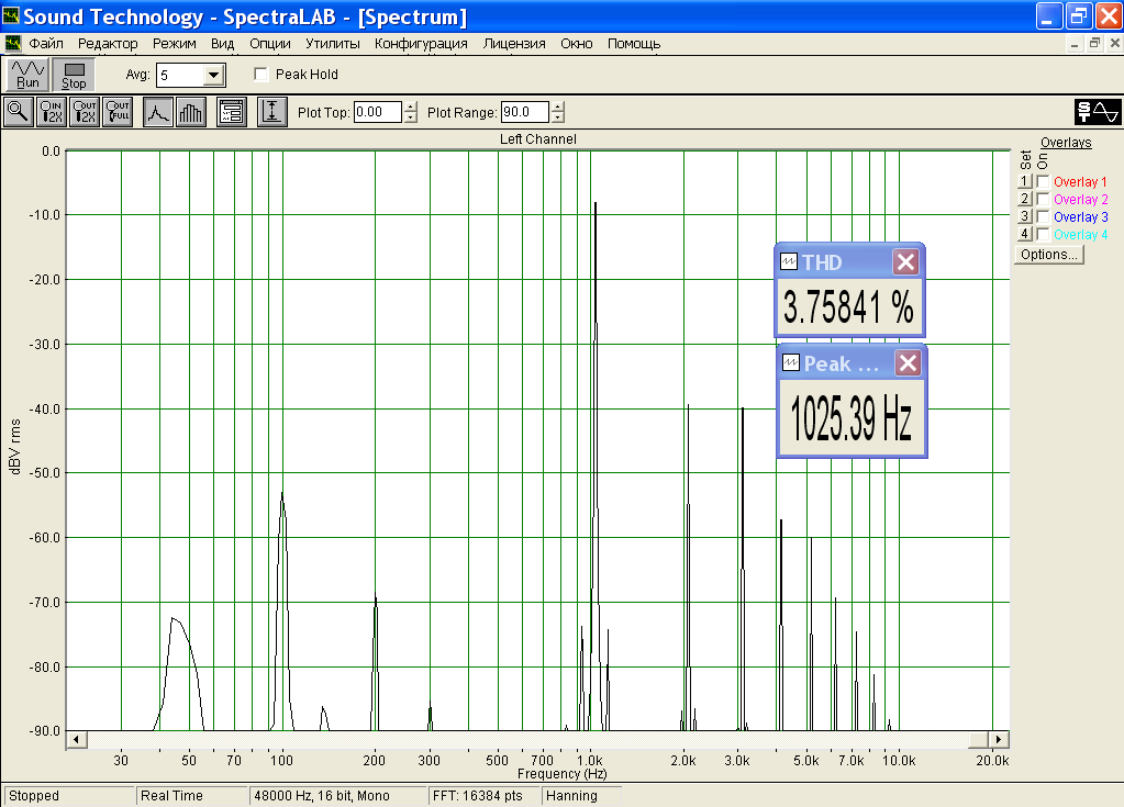 На спектрограммах видно, что есть маленький фон (на практике его не слышно), но если есть желание, можно уделить блоку питания (после всех настроек и проверок) дополнительное внимание.