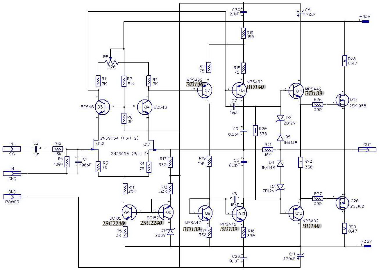 Приятель есть у меня. Когда-то паял, лет 25 назад. Из-за ипотеки недавно продал свой Денон. Попросил меня что-нибудь ему спаять. Неделю назад покопались в его коробочке (оказывается у него что-то осталось) и нашли там две пары 1058/162. Предложил ему Минуэтик. Пока транса нет, он кумекает) Прислал мне ссылку на схему с Веги и саму схему. Хочет такой. Q3-Q6 поставить 2240, далее BD 139-140. Это я к тому, что кондер только на входе.